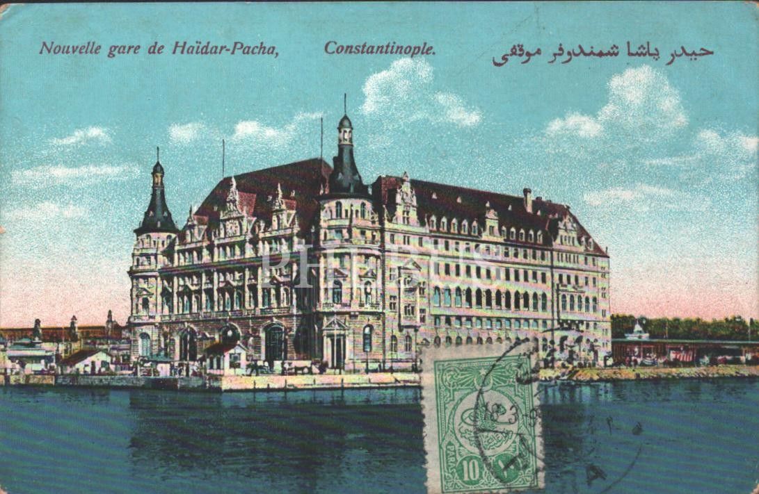 İstanbul Haydarpaşa Garı, "Nouvelle gare des Haidar-Pacha Constantinople.", Osmanlıca "Haydarpaşa Şimendifer Mevki" yazılı, ed.: M. J. C., pullu ve postadan geçmiş, İstanbul,14x9 cm...