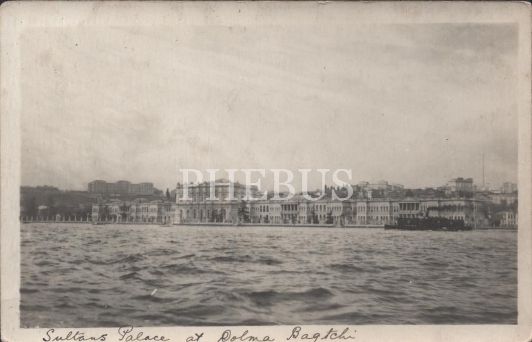 Dolmabahçe Sarayı´nın denizden görünüşü, "Sultans Palace at Dolma Bagtchi", İstanbul, 14x9 cm...