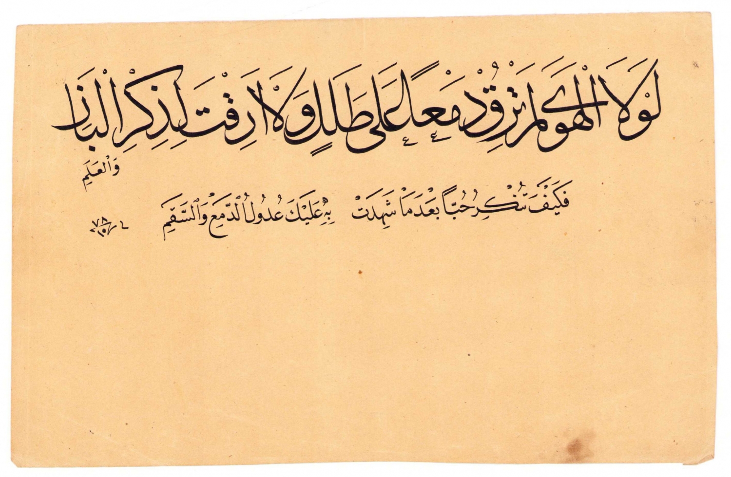 Sülüs Nesih yazı, 1278 tarihli, Mehmed Tevfik Efendinin terekesine ait, 23x14,5 cm.