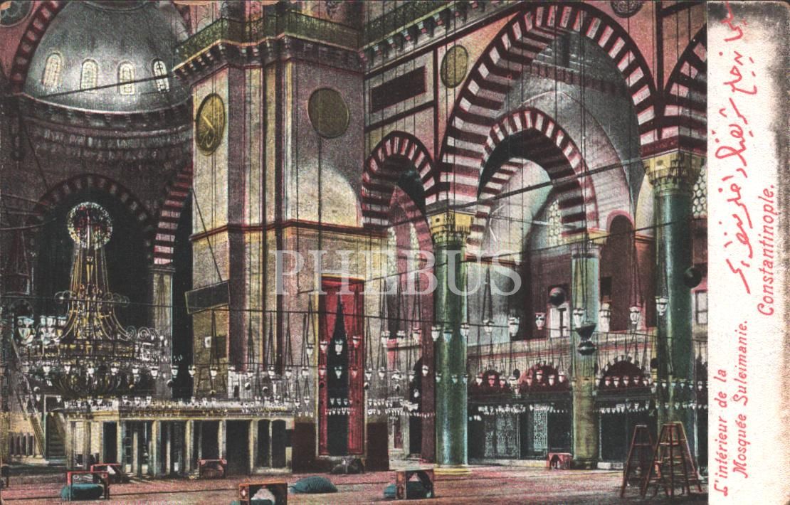 Süleymaniye Cami, "L´intérieur de la Mosquée Suleimanie Constantinople", Osmanlıca "Süleymaniye Cami-i Şerifi´nin dahili manzarası", ed.: M. J. C., İstanbul, 14x9 cm...