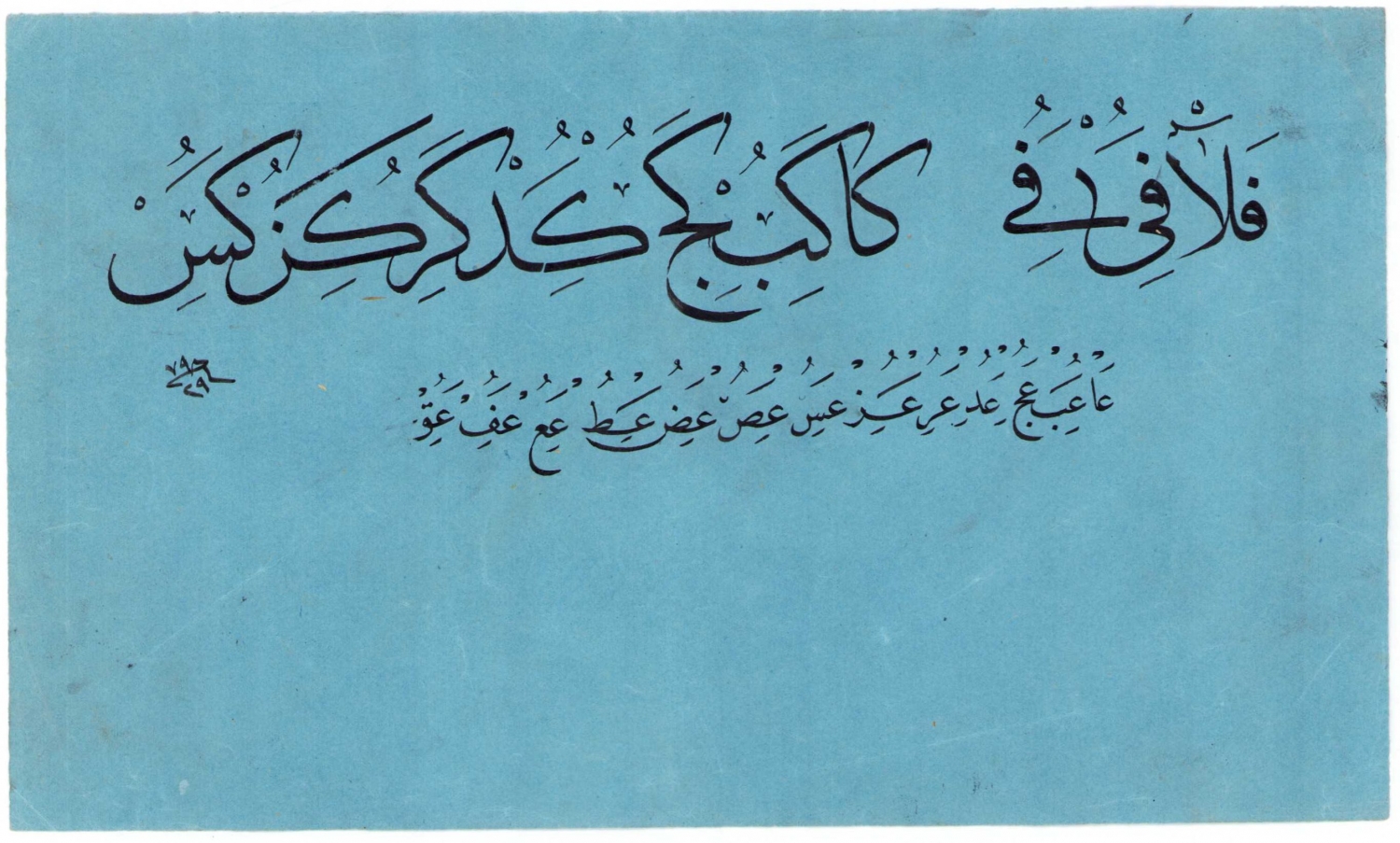 Sülüs Nesih hurufat meşki, 1279 tarihli, Mehmed Tevfik Efendinin terekesine ait, 22,5x12,5 cm.