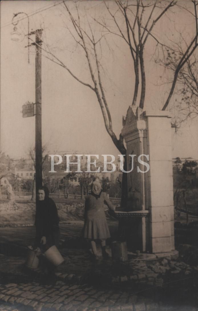 Yıldız Çeşmesi´nde ellerinde kovalarla çeşme başında hanımlar, İstanbul, 14x9 cm...