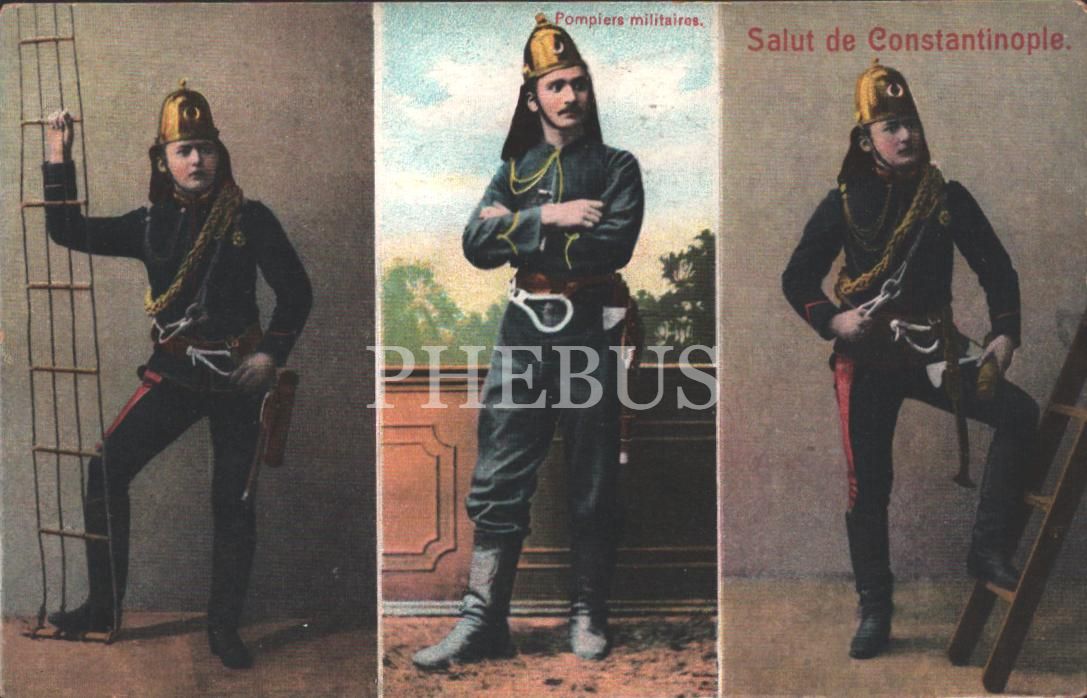 İtfaiyeciler, "Pompiers militaries", "Salut de Constantinople", İstanbul, 14x9 cm...