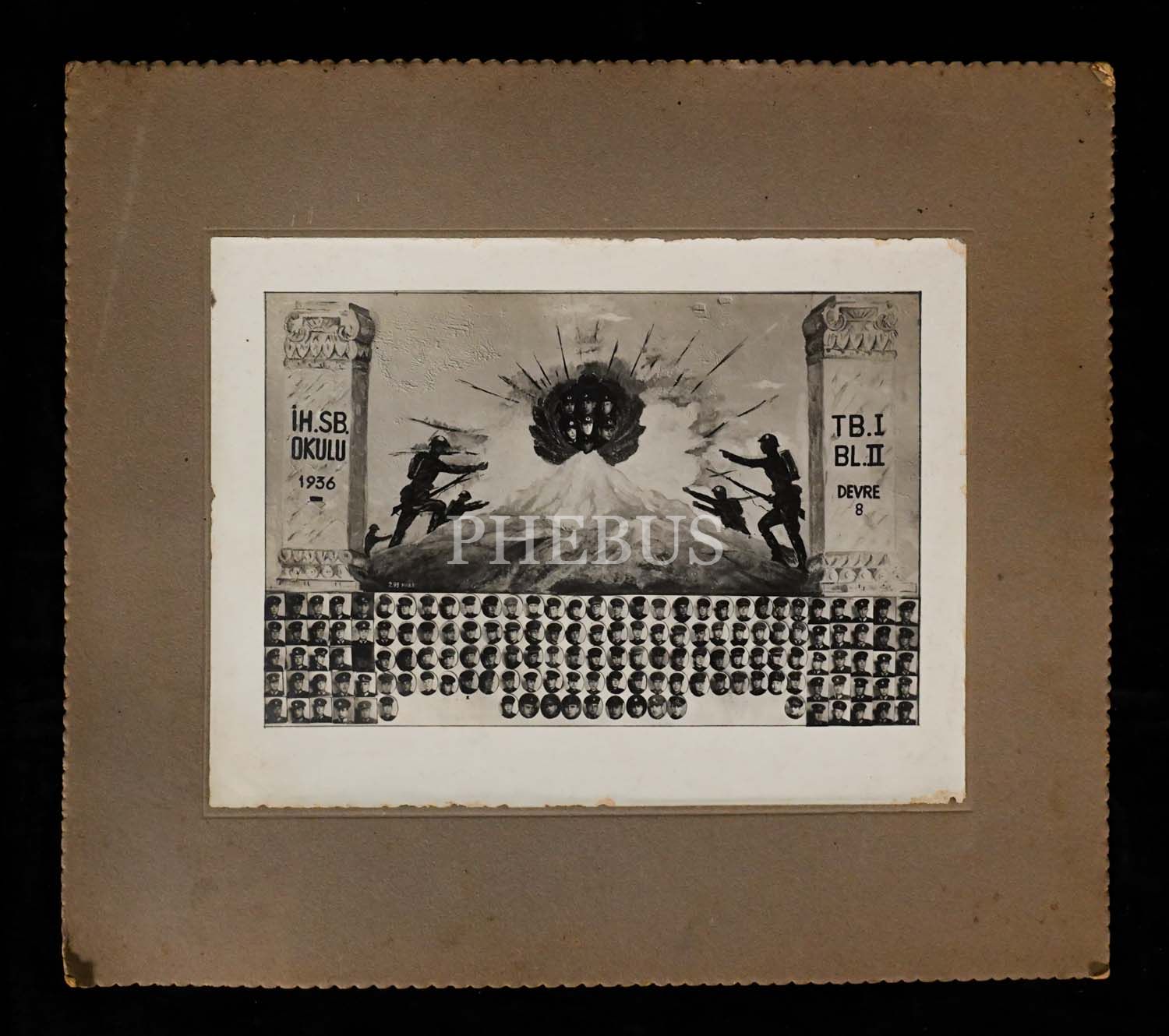 İhtiyat Subay Okulu 1936 mezunlarının kendi fotoğraflarıyla hazırladıkları kolaj çalışması, paspartusuyla birlikte 34x30 cm...