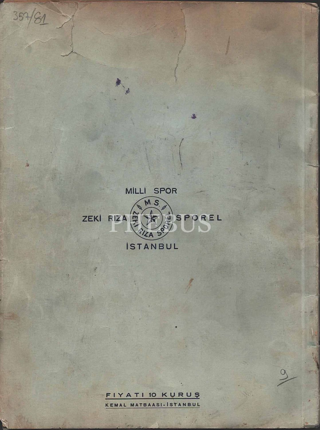 Eski Fenerbahçe Başkanı ve milli sporcu Zeki Rıza Sporel´in çıkardığı Milli Spor adlı spor eşyaları kataloğu, 32 sayfa, 18x25 cm...