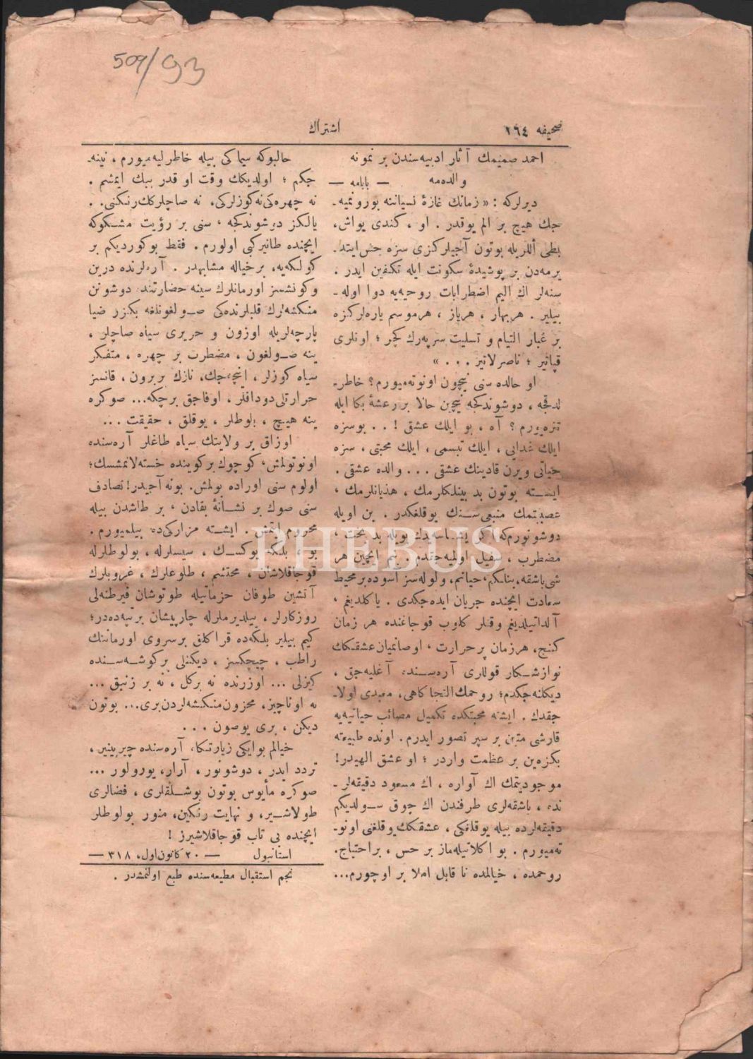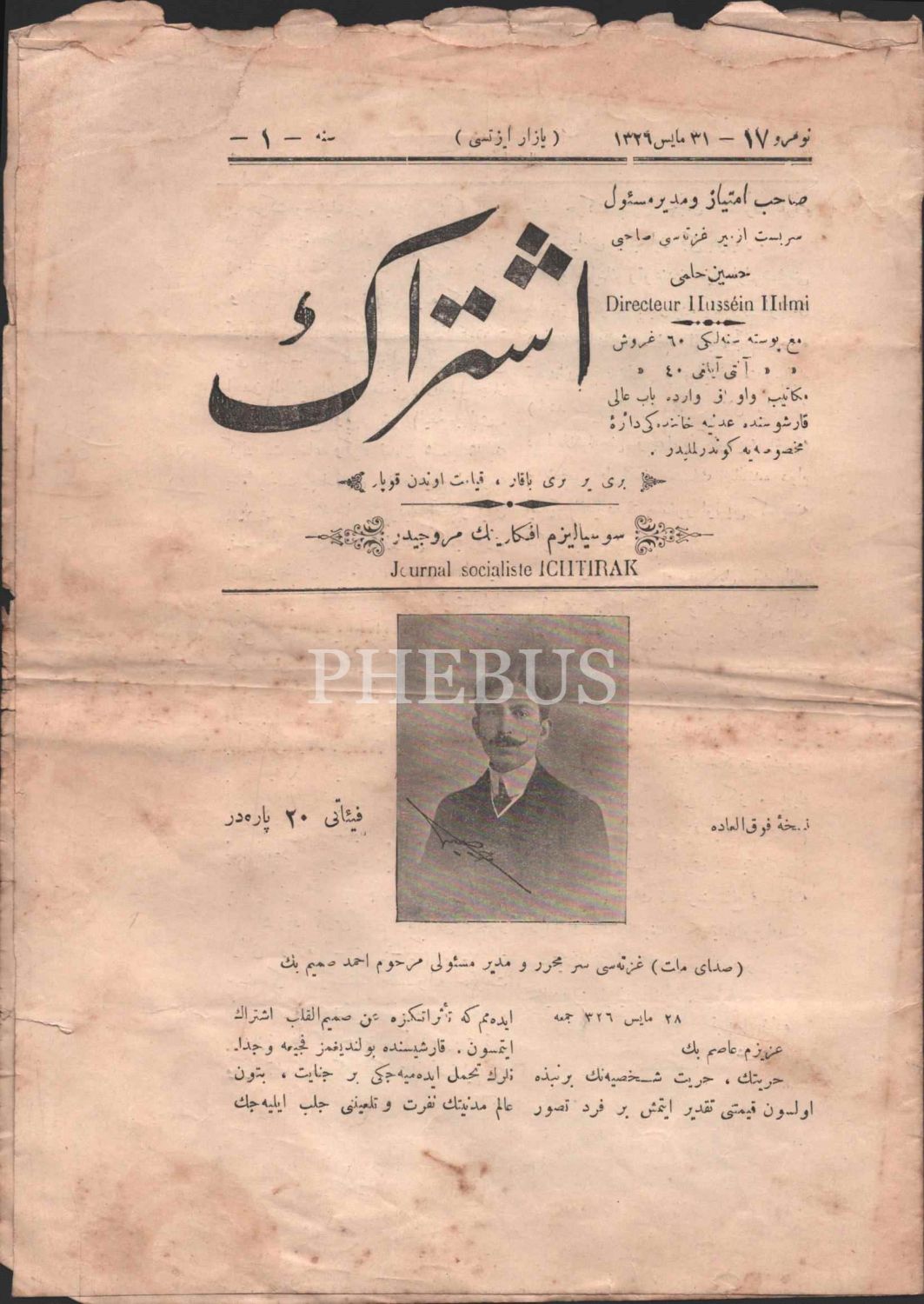 13 Mayıs 1326 tarihli, kapağında Saday-ı Millet gazetesinin Sermuharriri merhum Ahmet Samim Bey´in fotoğrafının yer aldığı İştirak dergisi, 8 sayfa, 20x29 cm...
