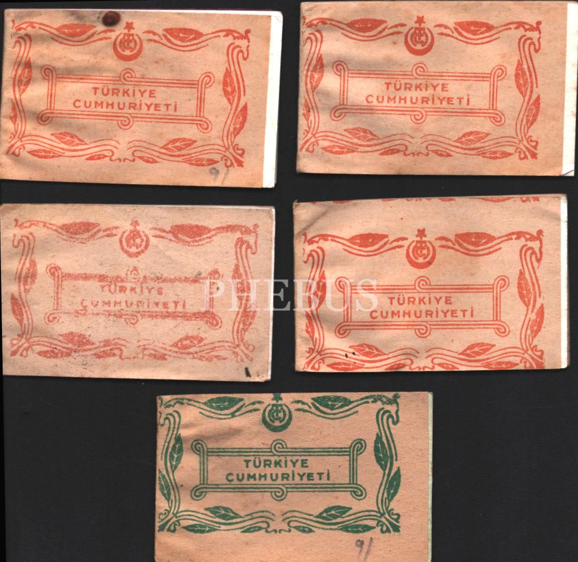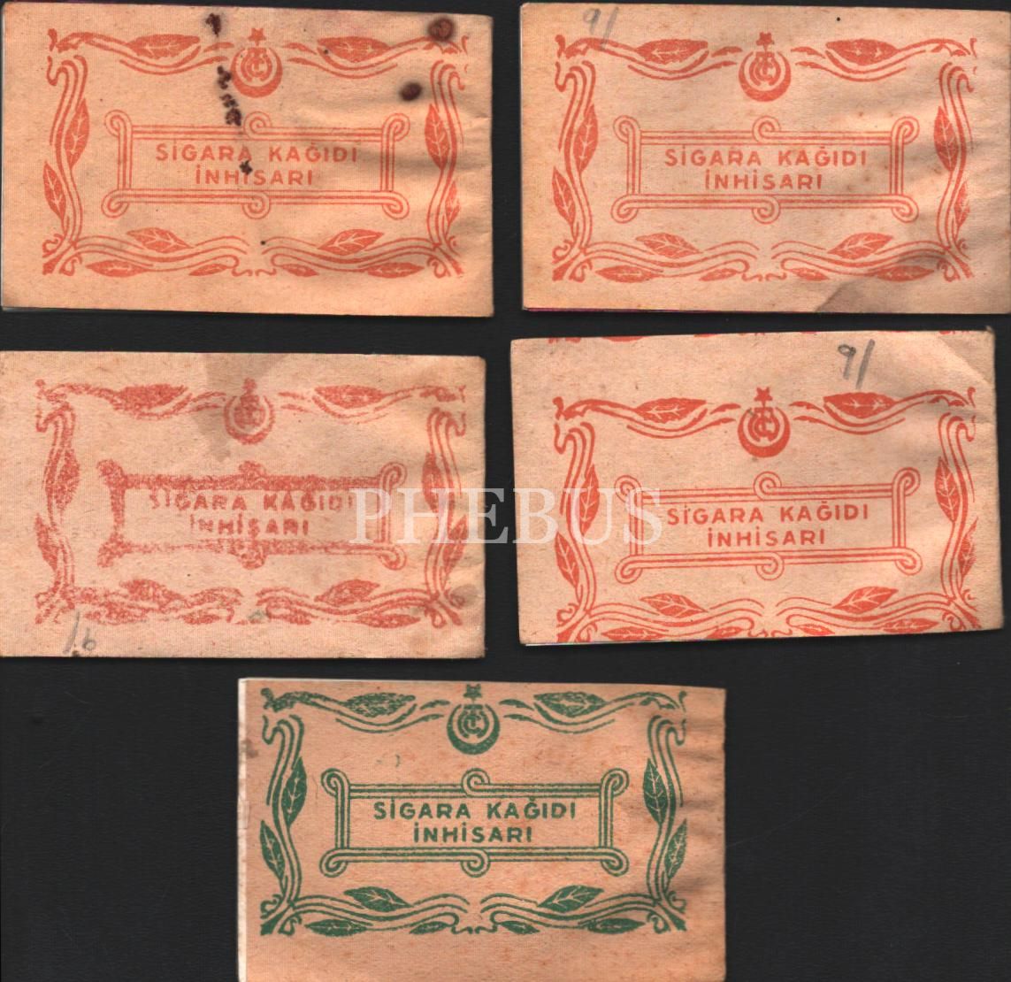 Beş adet "Türkiye Cumhuriyeti Sigara Kağıdı İnhisarı" sigara kağıdı, 7x4 cm...