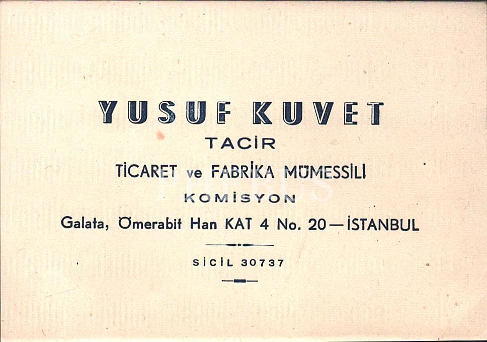 Kartvizit sahibi Yusuf Kuvet'in, Erken Cumhuriyet döneminde piyasaya sürülen "Kouvet [Kuvvet]" şaraplarının üreticisi olduğu düşünülmektedir.