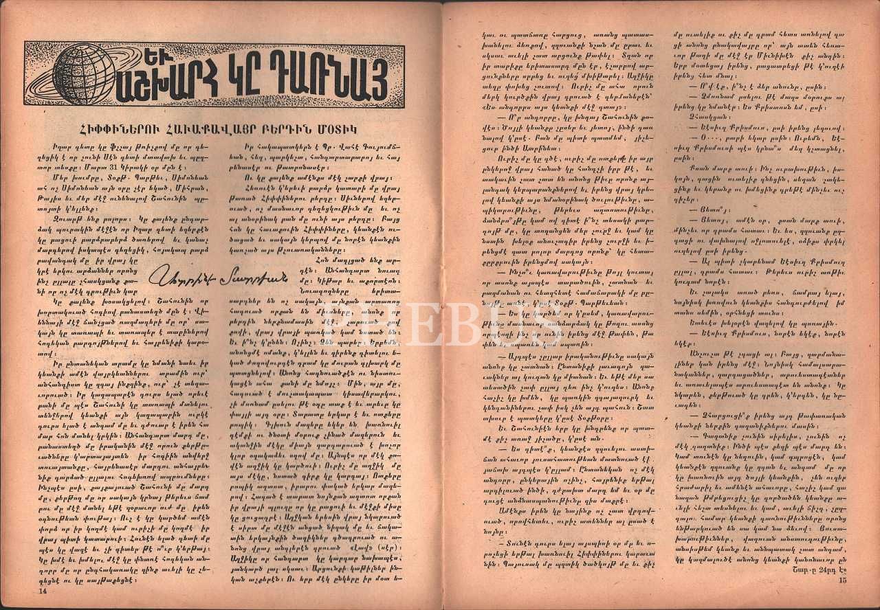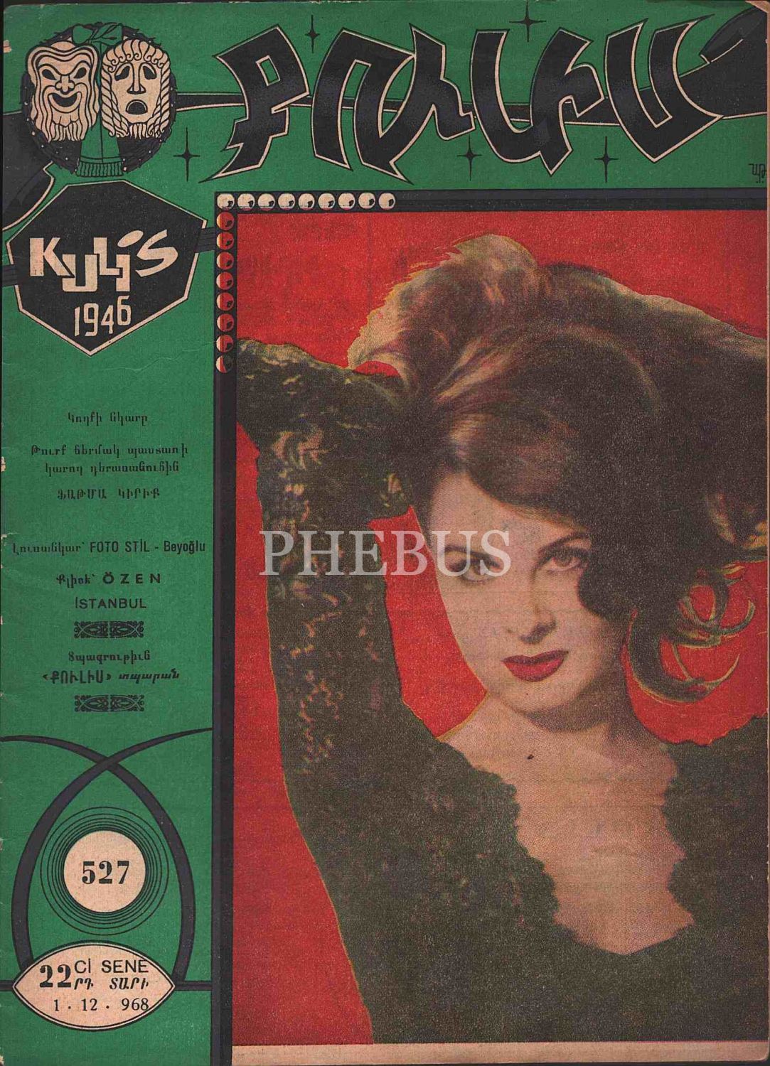 Ermenice Kulis dergisinin 1968 tarihli Fatma Girik kapaklı 527. sayısı, 30 sayfa, 20x28 cm...