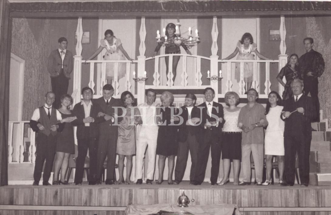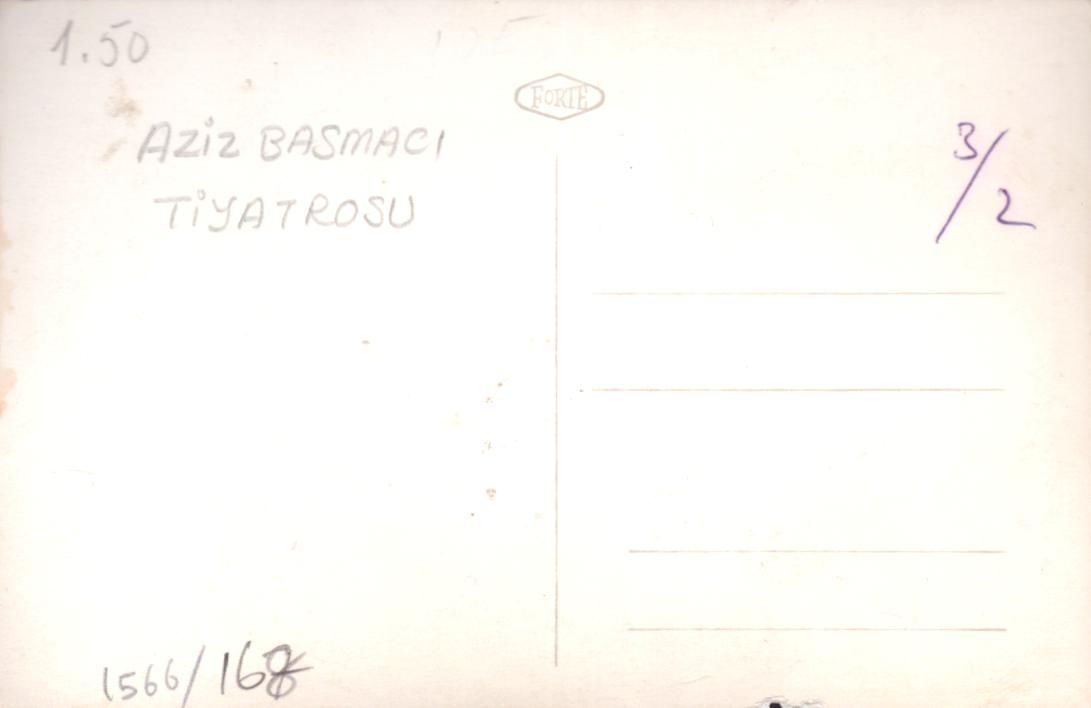 Oyuncu Aziz Basmacı´nın sahne arkadaşları ile hatıra fotoğrafı, 14x9 cm...