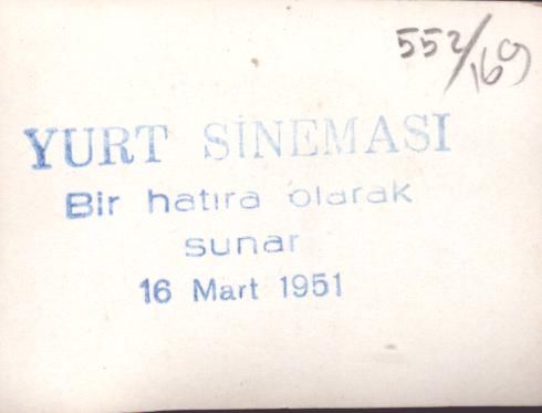Yurt Sineması´nın 16 Mart 1949´da vizyona giren "Ölünceye Kadar Seninim" filmi için hatıra olarak sunduğu fotoğraf, 6x5 cm...
