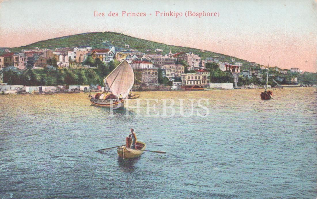 Denizden Büyükada manzarası, "Iles des princes-Prinkipo (Bosphore)", İstanbul, 14x9 cm...