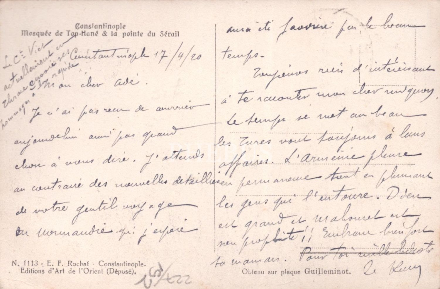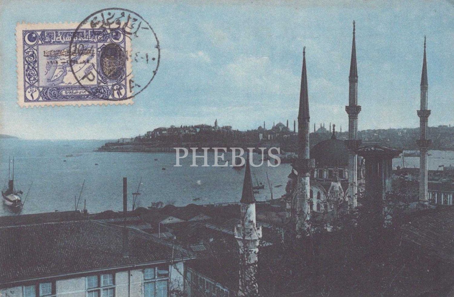 Nusretiye Cami ve Topkapı Sarayı manzarası, ed.: E.F. Rochaf, Constantinople, pullu ve postadan geçmiş, İstanbul, 14x9 cm...