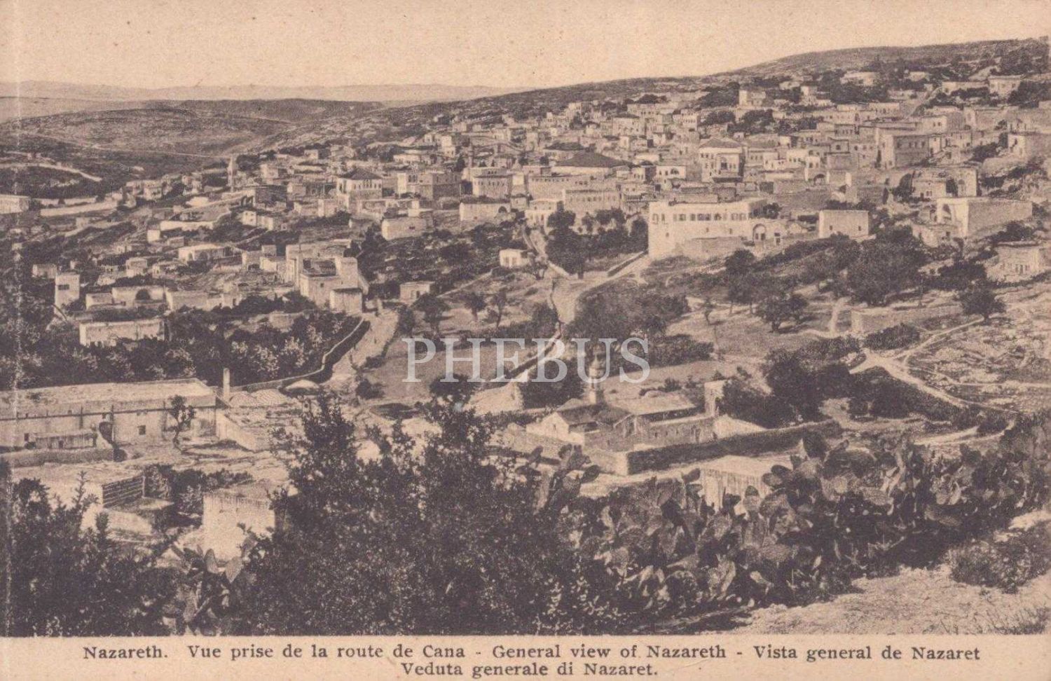 İsrail´in Nasıra şehri manzarası, "Nazareth Vue prise de la route de Cana - General view of Nazareth- Vista general de Nazaret- Veduta generale di Nazaret", İsrail, 14x9 cm...