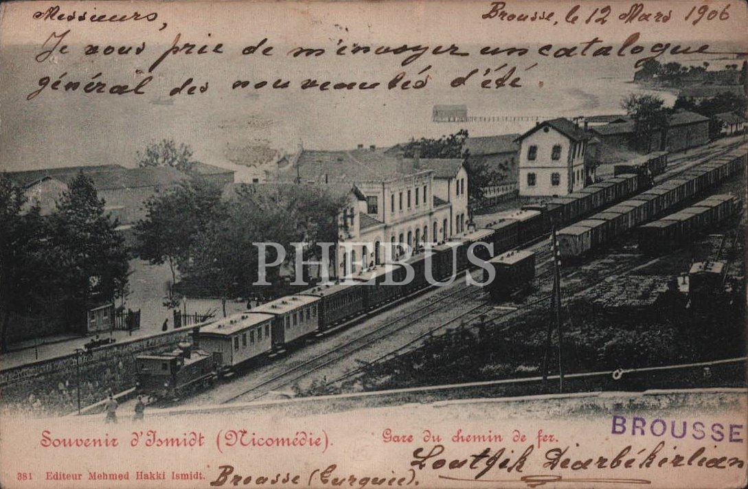 İzmit Tren İstasyonu, "Souvenir d´Jsmidt (Nicomedie)", "Gare du chemin de fer", ed.: Mehmed Hakki İsmidt, Kocaeli, 14x9 cm...