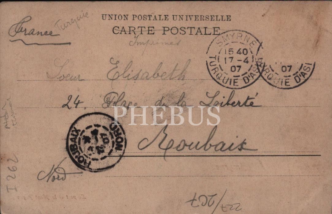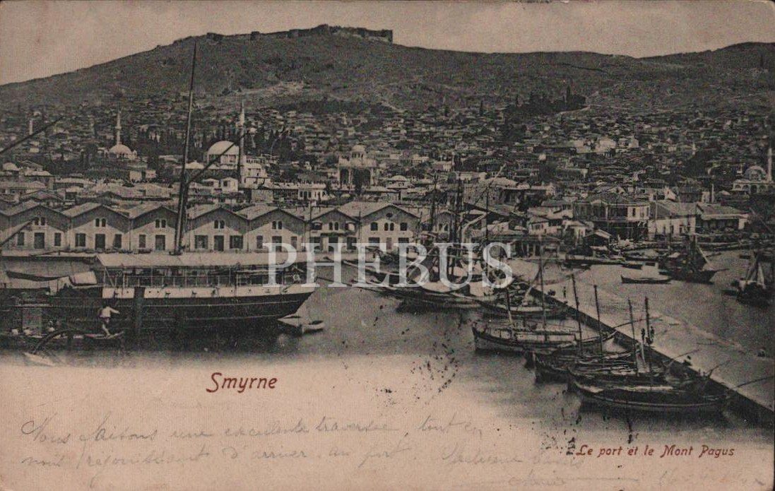 İzmir´den liman manzarası, "Le port et le Mont Pagus Smyrne", İzmir, 14x9 cm...