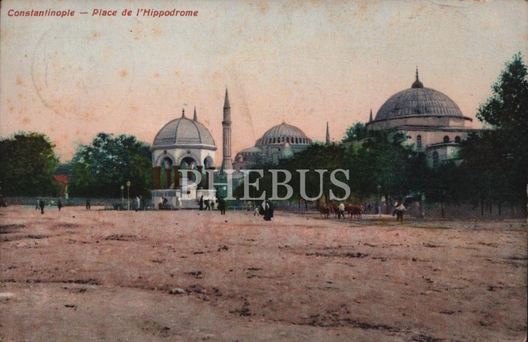 Sultanahmet Meydanı ve Alman Çeşmesi, "Constantinople- Place de l´Hipodroem", ed.: S. N. Nicolaievitch, Sonstantinople, pullu ve postadan geçmiş, İstanbul, 14x9 cm...