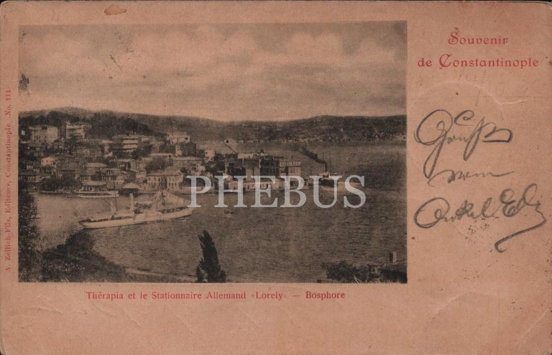 Denizden Trabya manzarası, "Thérapia et ie Stationnaire Allemand - Bosphore", ed.: A. Zellich, pullu ve postadan geçmiş, İstanbul, 14x9 cm... Teklif Ver Al | PHEBUS Müzayede