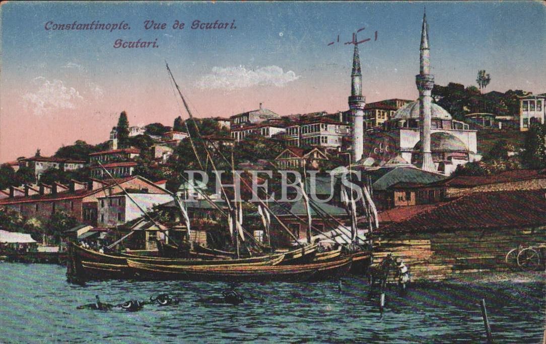 Denizden Üsküdar manzarası, "Constantinople Vue de Scutari", ed.: M. J. C., pullu ve postadan geçmiş, İstanbul, 14x9 cm...