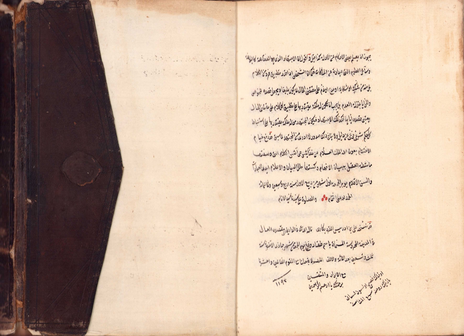 Molla Hüsrev'in Mir'atü’l-usul fi şerhi Mirkati’l-vüsul isimli eseri, Arapça, 1193 tarihli, şemseli deri cildinde, cildi haliyle, 286 varak, 15,5x21,5 cm.