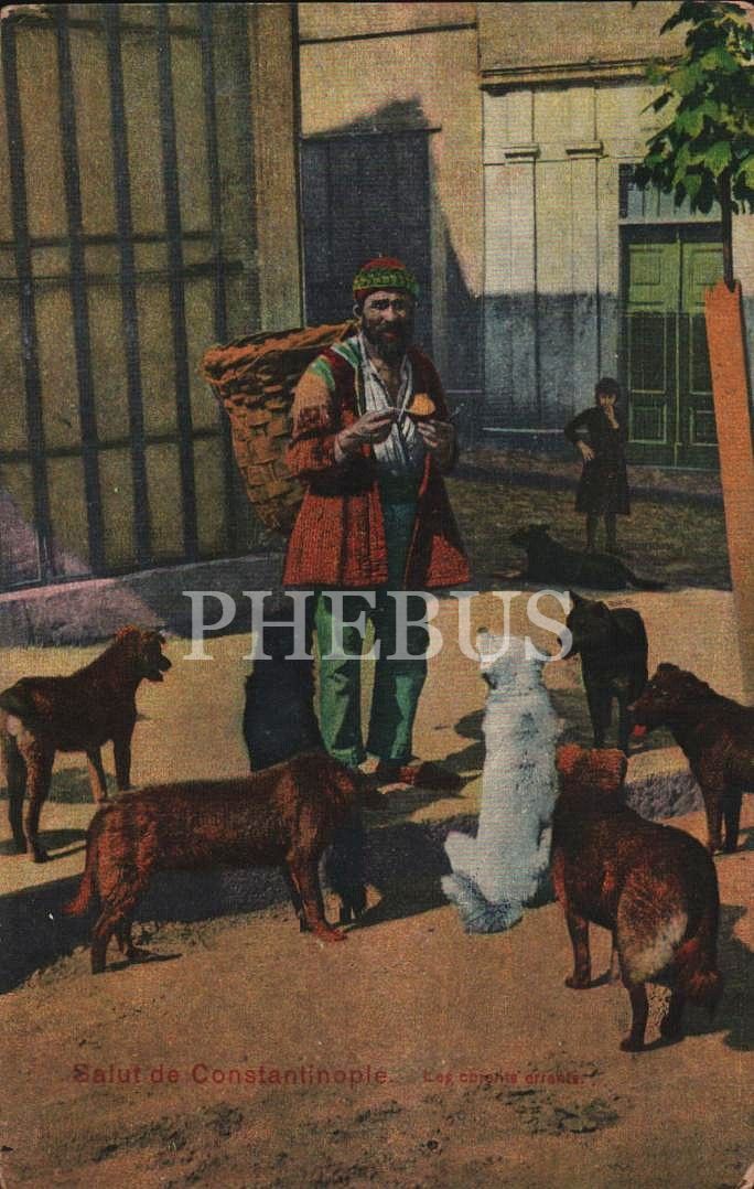 İstanbul´da hamal ve etrafına toplanan sokak köpekleri, "Salut de Constantinople, Les chients errants", İstanbul, 14x9 cm...