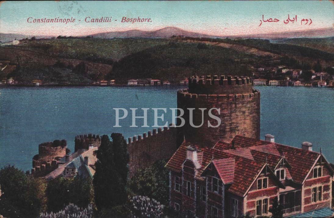 Rumeli Hisarı, "Constantinople - Candilli -Bosphore", Osmanlıca "Rumeli Hisarı" yazılı, ed.: M. J. C., pullu ve postadan geçmiş, İstanbul, 14x9 cm...