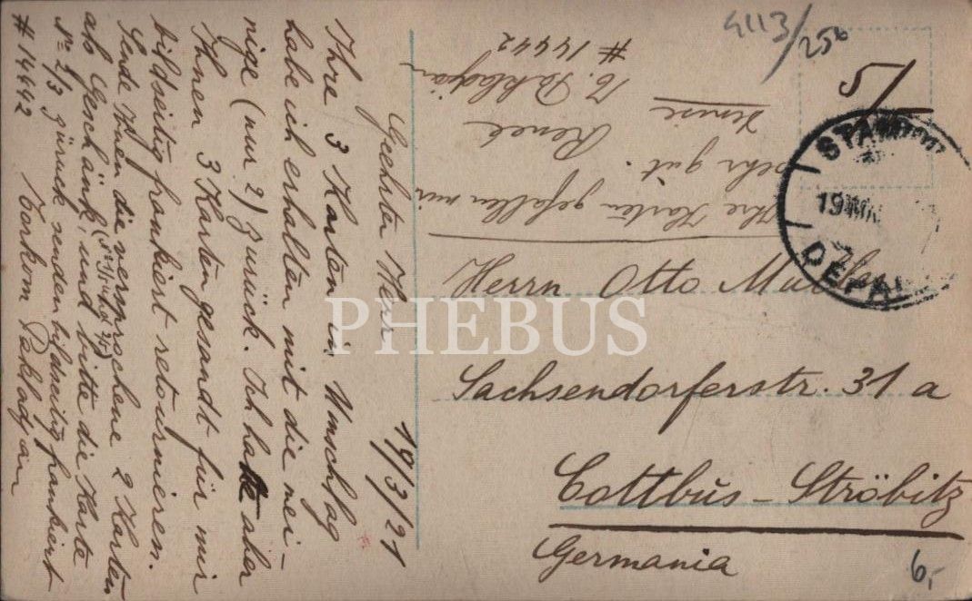 Arka yüzünde, Almanya´ya gönderilmiş Almanca mektup yer almaktadır.