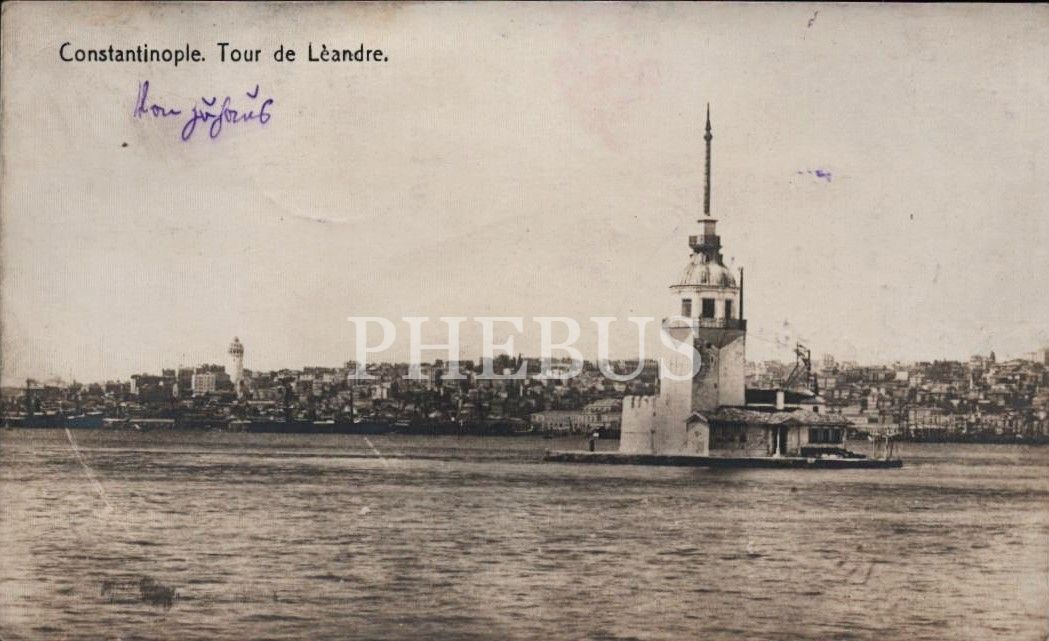 Kız Kulesi, "Constantinople, Tour de Leandre", ed.: M. J. C., postadan geçmiş, İstanbul, 14x9 cm...
