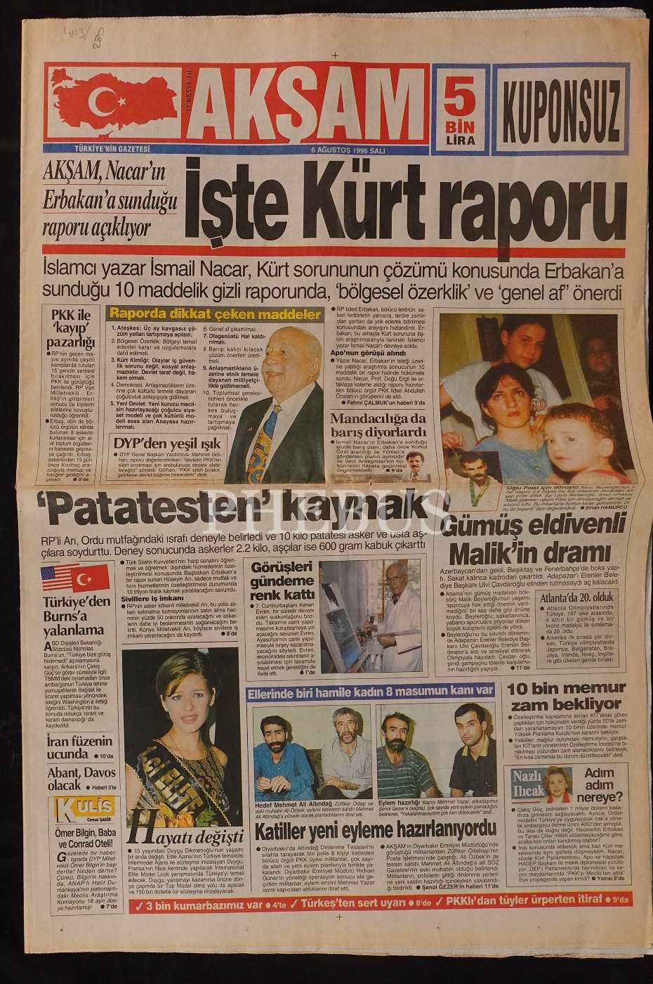 6 Ağustos 1996 tarihli Akşam gazetesinin ilk sayısı, 16 sayfa...