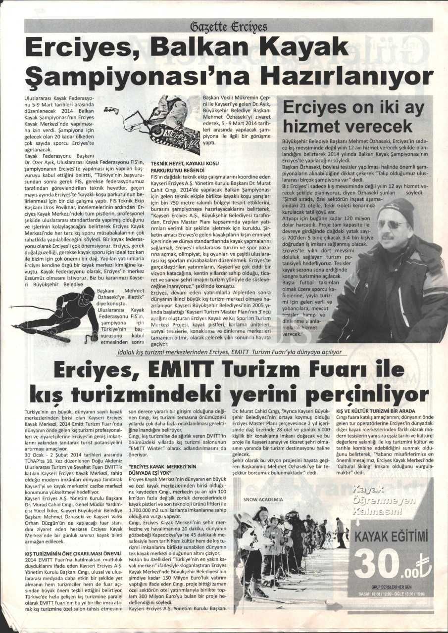 Ocak 2014 tarihli Gazette Erciyes gazetesinin ilk sayısı, 8 sayfa...