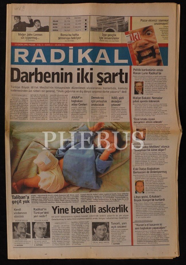 13 Ekim 1996 tarihli Radikal gazetesinin ilk sayısı ve Radikal İki ekinin ilk sayısı, 24 sayfa...