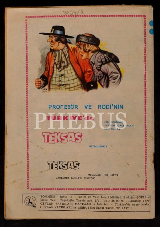 TOMMİKS (Haftalık Mecmua), No:16, 1971, Ceylan Yayınları, 50 sayfa, 14x20 cm