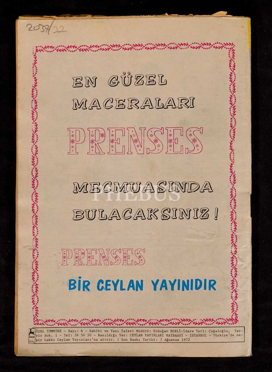 TOMMİKS (Haftalık Mecmua), Özel Sayı No:6, 1972, Ceylan Yayınları, 50 sayfa, 14x20 cm