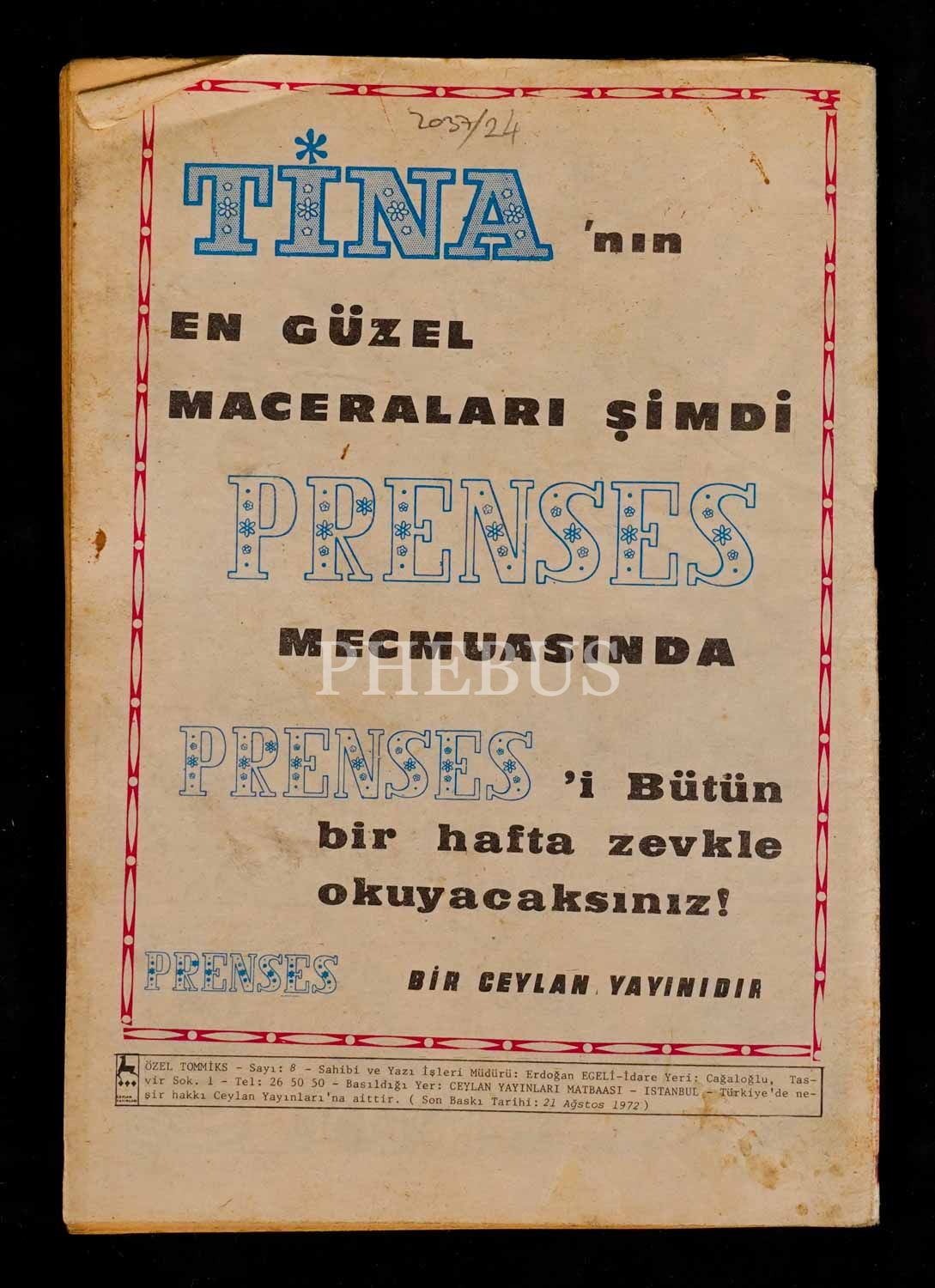 TOMMİKS (Haftalık Mecmua), Özel Sayı No:8, 1972, Ceylan Yayınları, 50 sayfa, 14x20 cm