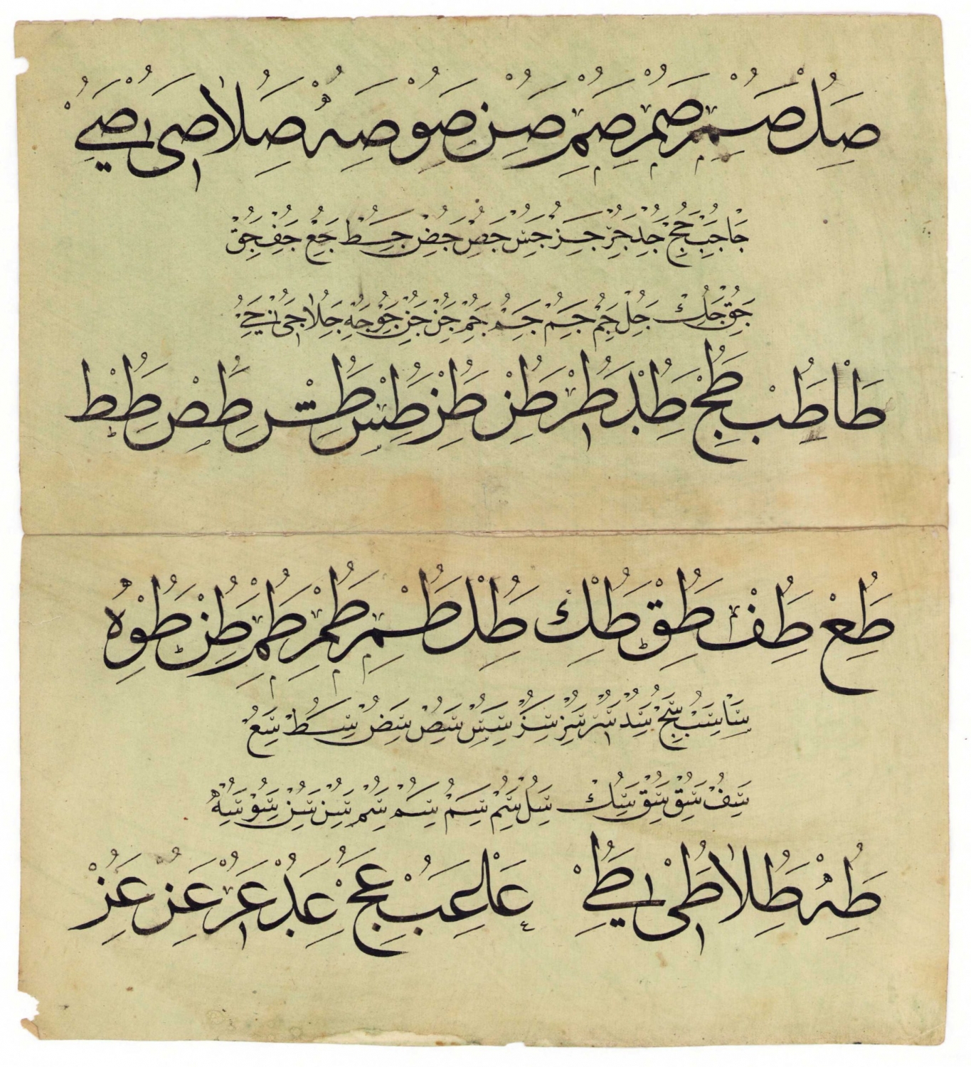 Hoca işi Sülüs Nesih hurufat meşki, 22x25 cm.