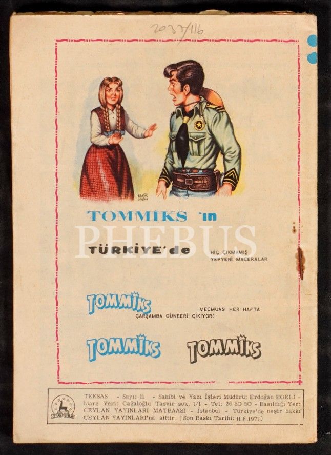 TEKSAS (Haftalık Mecmua), No:11, 1971, Ceylan Yayınları, 50 sayfa, 14x20 cm