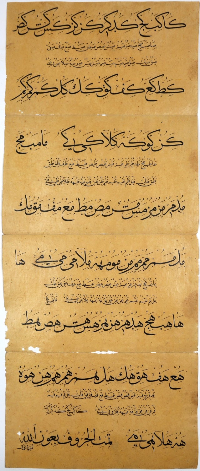 Hoca işi Sülüs Nesih hurufat meşki, 22,5x53 cm.