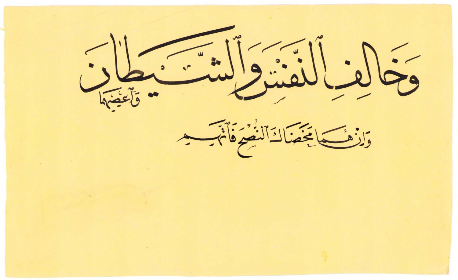 Sülüs Nesih yazı, Kaside-i Bürde'den bir beyit, Mehmed Tevfik Efendinin terekesine ait, 23x14 cm.