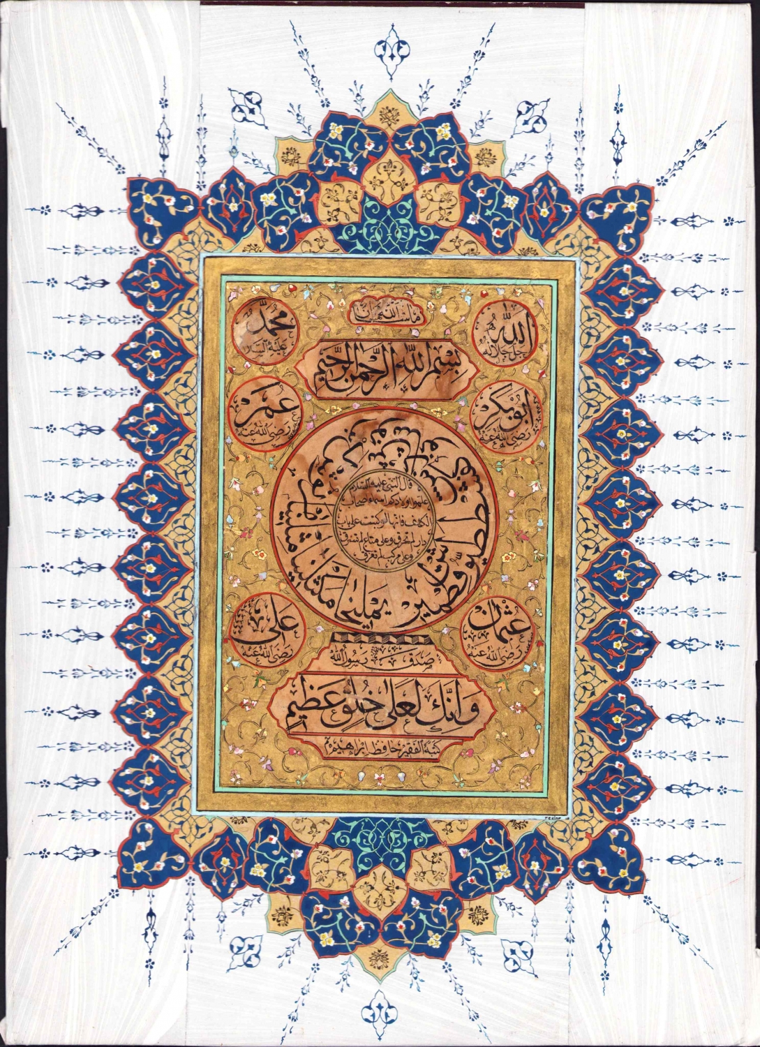 Hilye'nin göbek kısmında Ashab-ı kehf'in isimleri ve onların isimlerinin çocuklarınıza öğretin içerikli hadis-i şerif yazılı.