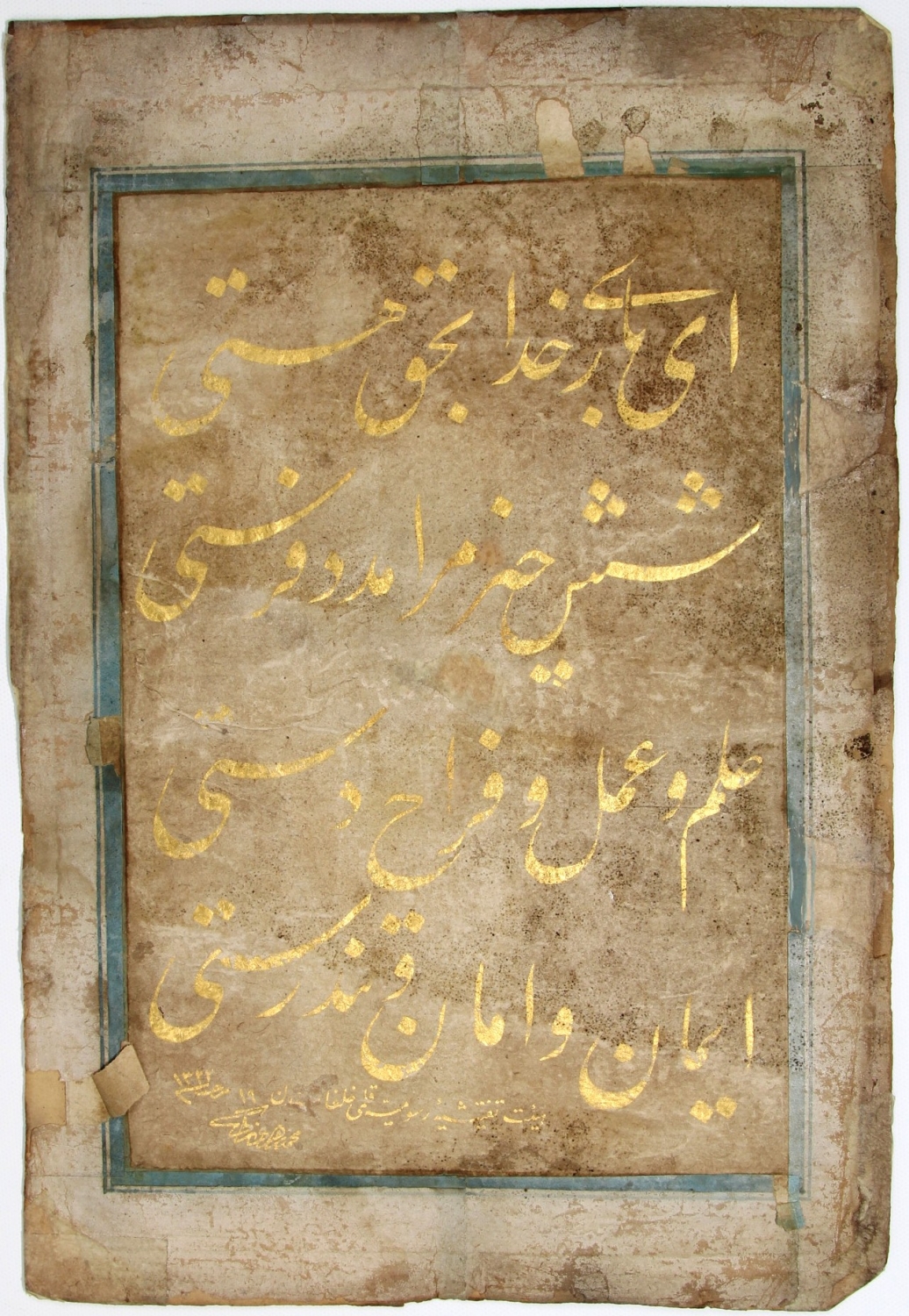 Zerendud talik yazı, Heyet-i Teftişiye-yi Rüsumiye kalemi hulefasından Mehmed Zühdi ketebeli, 20,5x31 cm.