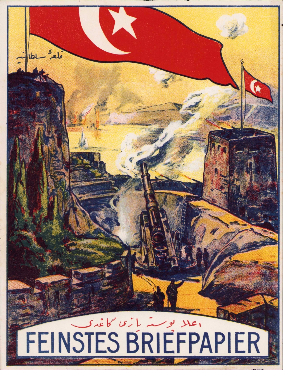 Osmanlıca etiket, Kal'a-i Sultaniye resimli 'Ala Posta Yazı Kağıdı', Feintes Briefpapier, 18x24 cm.