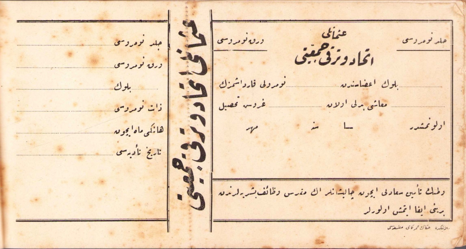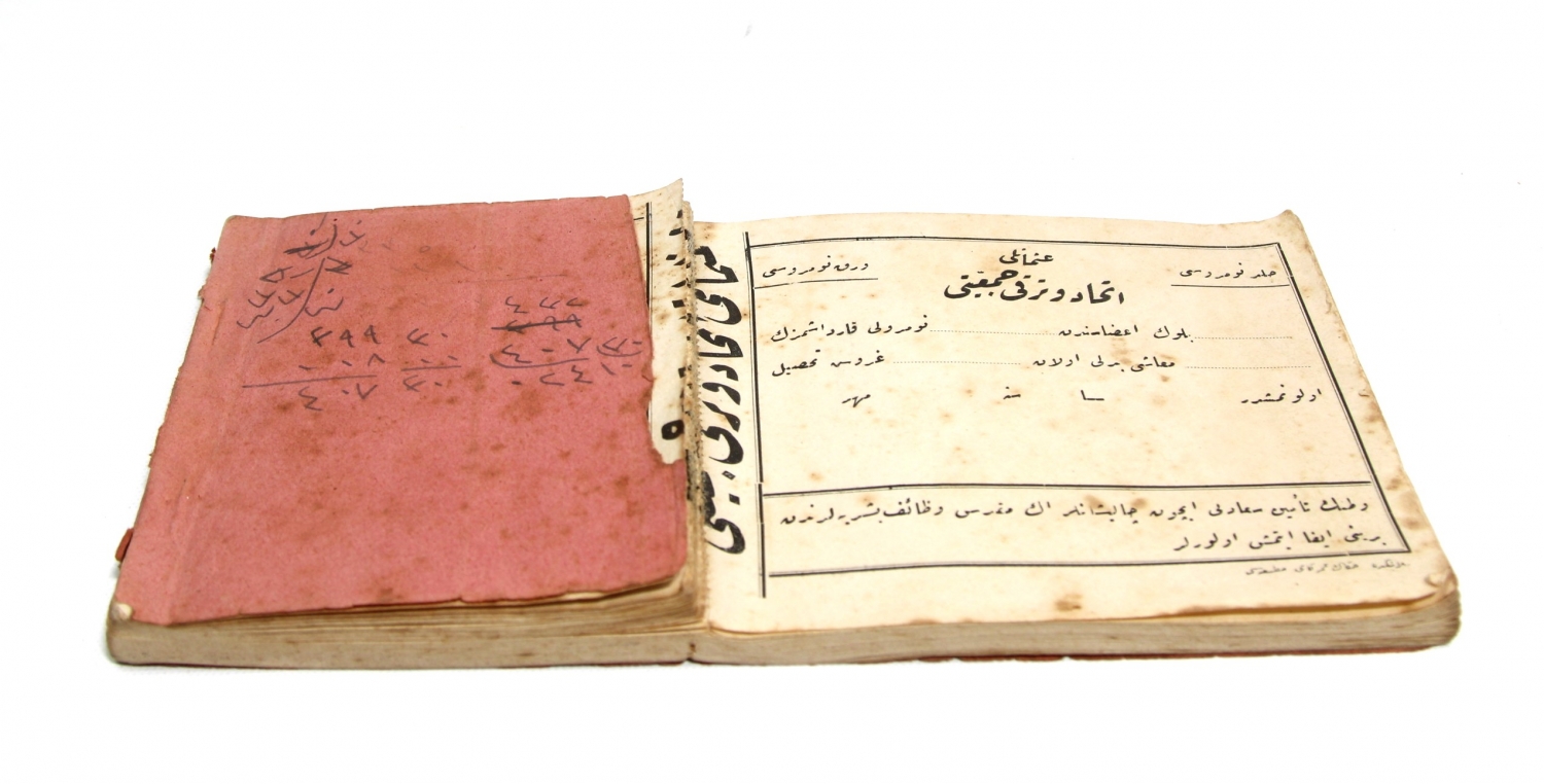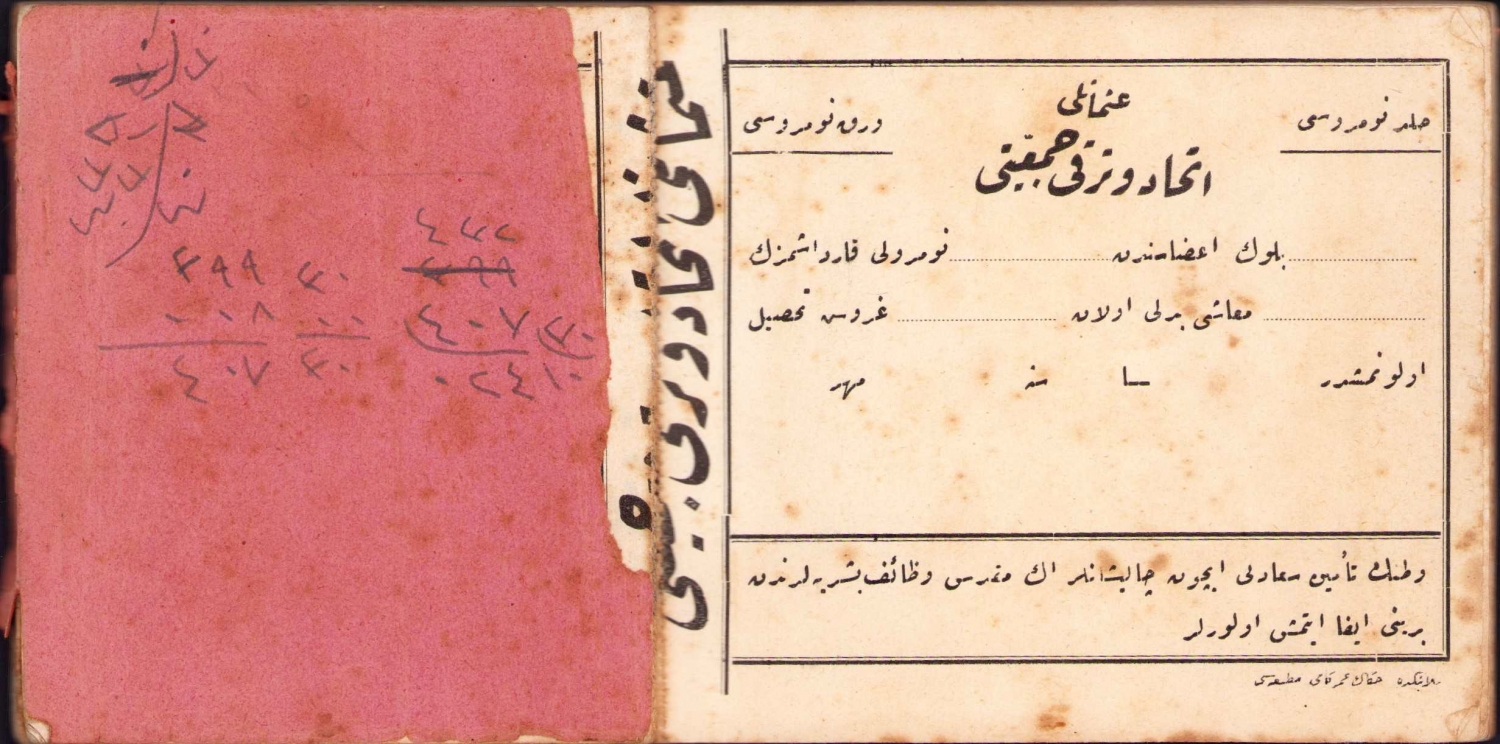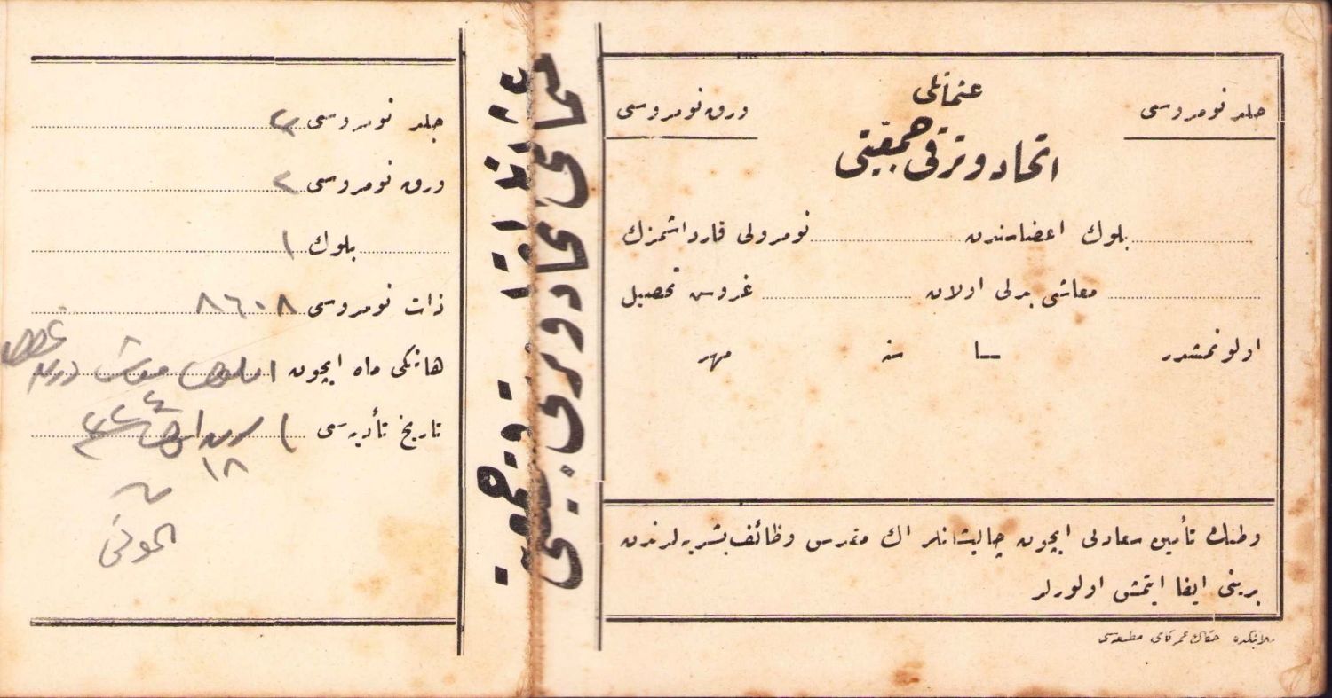 Osmanlı İttihat ve Terakki Cemiyeti Tahsil Makbuzu, 1324 tarihli, 20x10 cm.