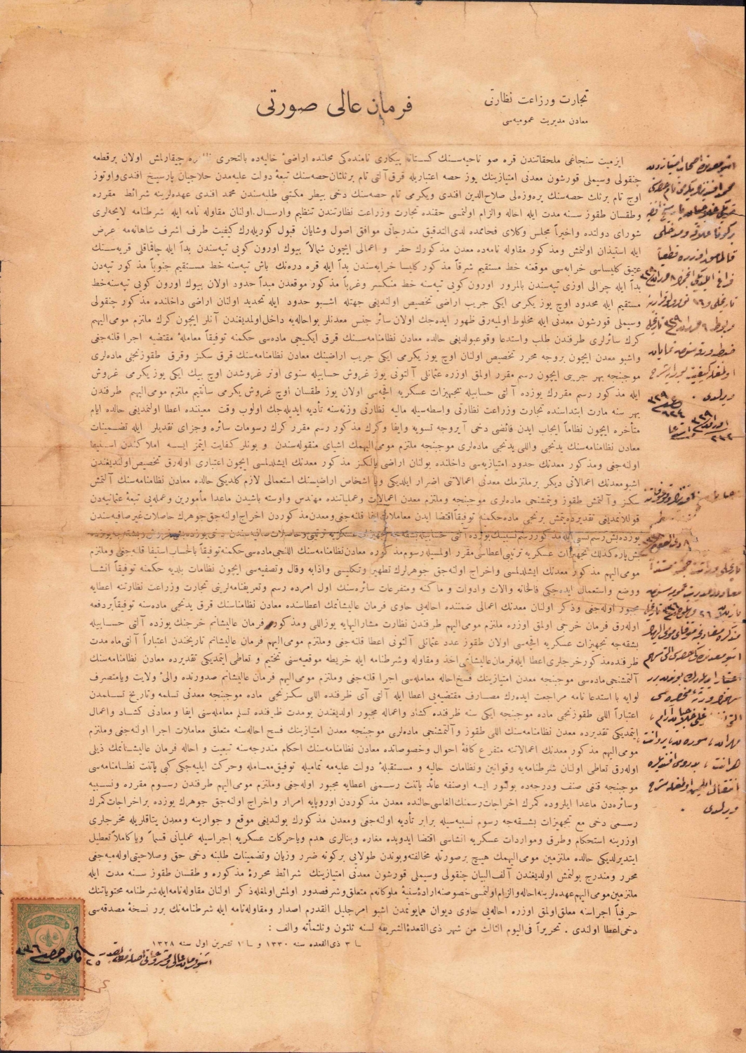 Ferman-ı Ali sureti, Ticaret ve Ziraat Nazırlığı, Maden Müdiriyet-i Umumiyesi, 28x40 cm.