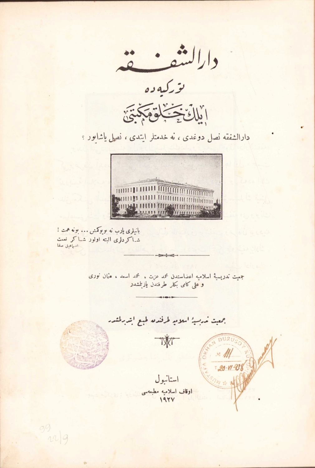 Darüşşafaka: Türkiye'de İlk Halk Mektebi Nasıl Doğdu, Ne Hizmetler Etti, Nasıl Yaşıyor, Muharriri: Ali Kami, İstanbul, Evkaf-ı İslamiye Matbaası, 1927, 208 sayfa, 19,5x27,5 cm.