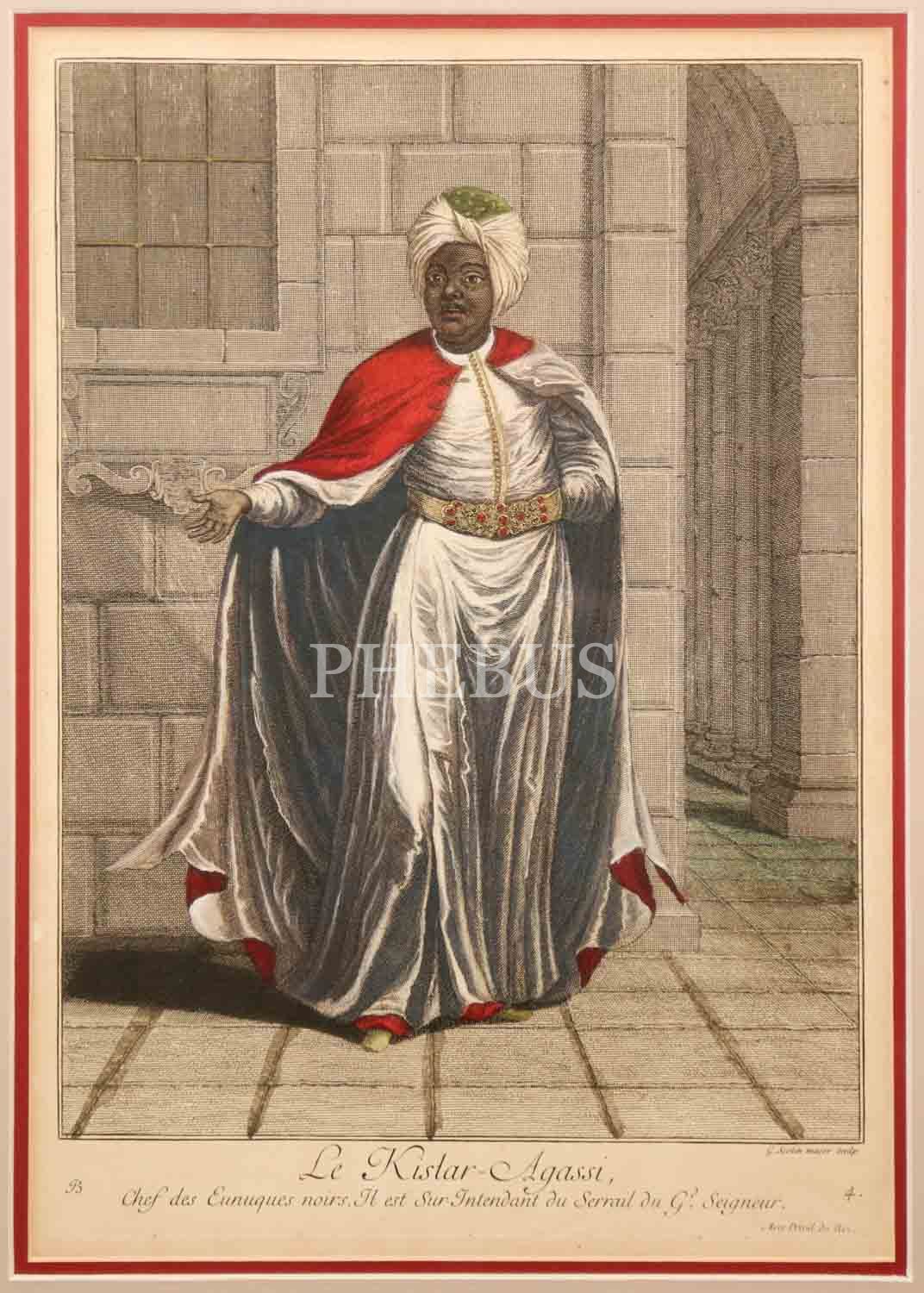 LE KISLAR-AGASSI (Kızlar Ağası), Jean-Baptiste Van Mour, 1714, bakır oyma baskı, (çerçevesiyle birlikte) 44x56 cm...