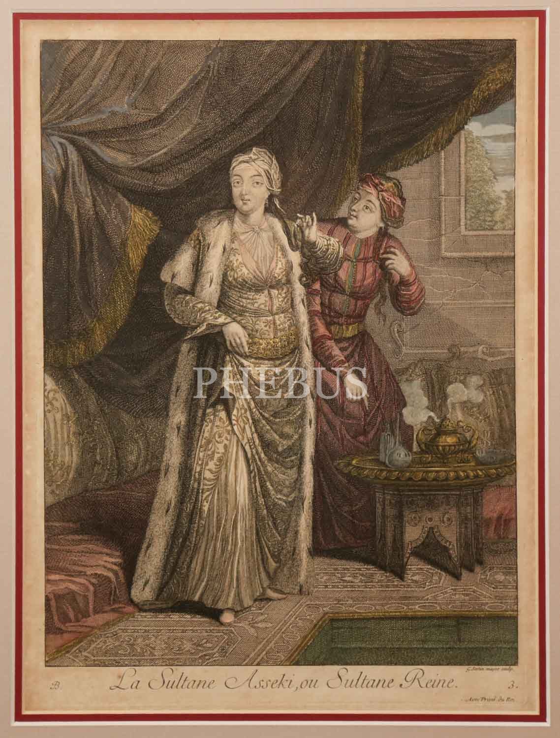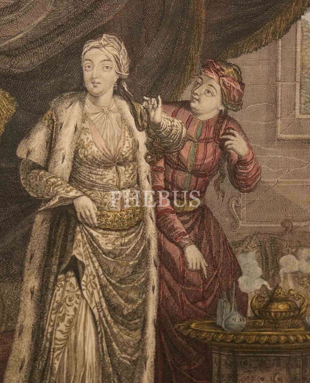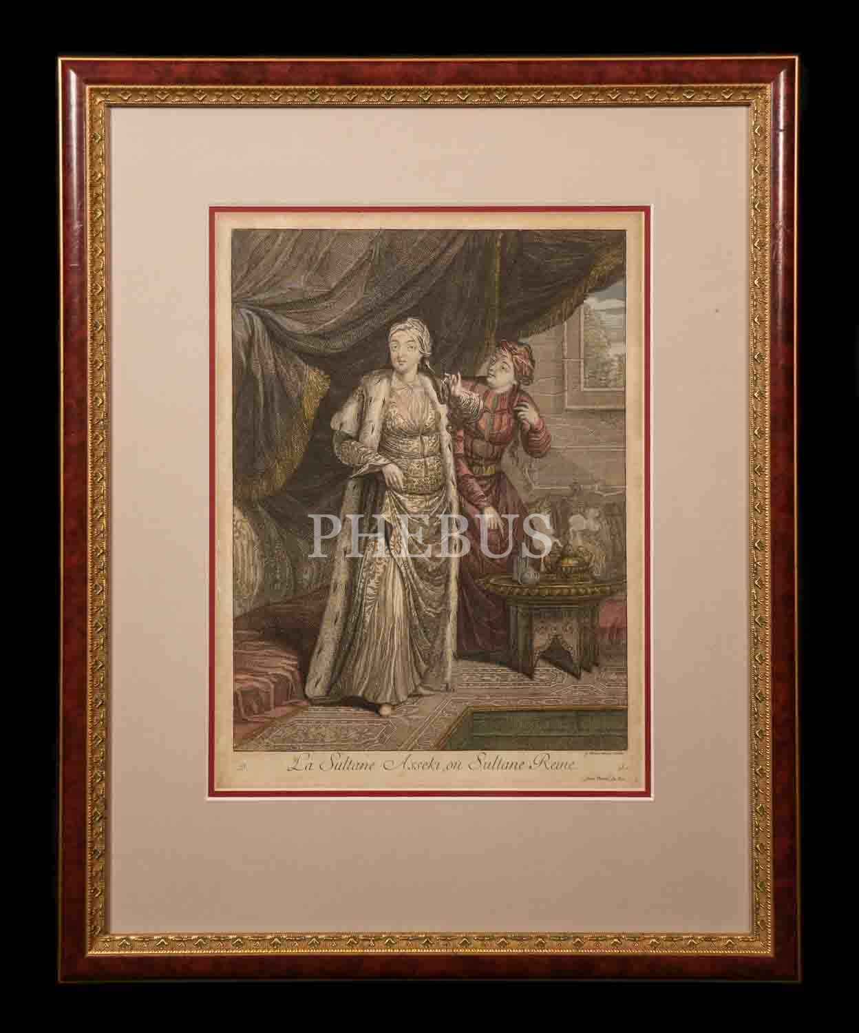 LA SULTANE ASSEKI, OU SULTANE REINE (Haseki Sultan veya Sultan Kraliçesi), Jean-Baptiste Van Mour, 1714, bakır oyma baskı, (çerçevesiyle birlikte) 44x56 cm...