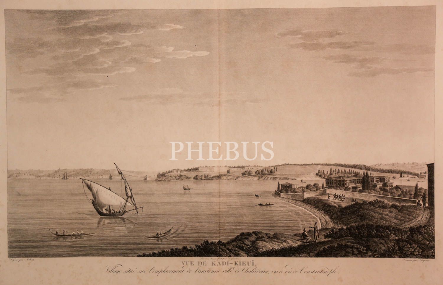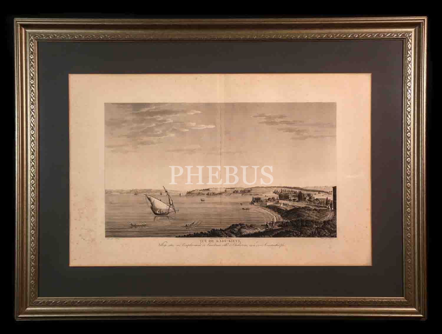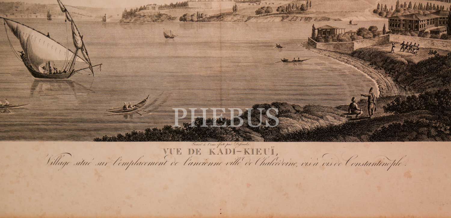 VUE DE KADI-KIEUI, VILLAGE SITUÉ SUR L´ÉMPLACEMENT DE L´ANCIENNE VILLE DE CHALCEDOINE, VIS ÀVIS DE CONSTANTINOPLE (Konstantinopolis´in karşısında, Kalkedon antik kentinin bulunduğu Kadıköy´ün görünümü), Antoine Ignace Melling, 1825, bakır oyma baskı, (çerçevesiyle birlikte) 121x90 cm...