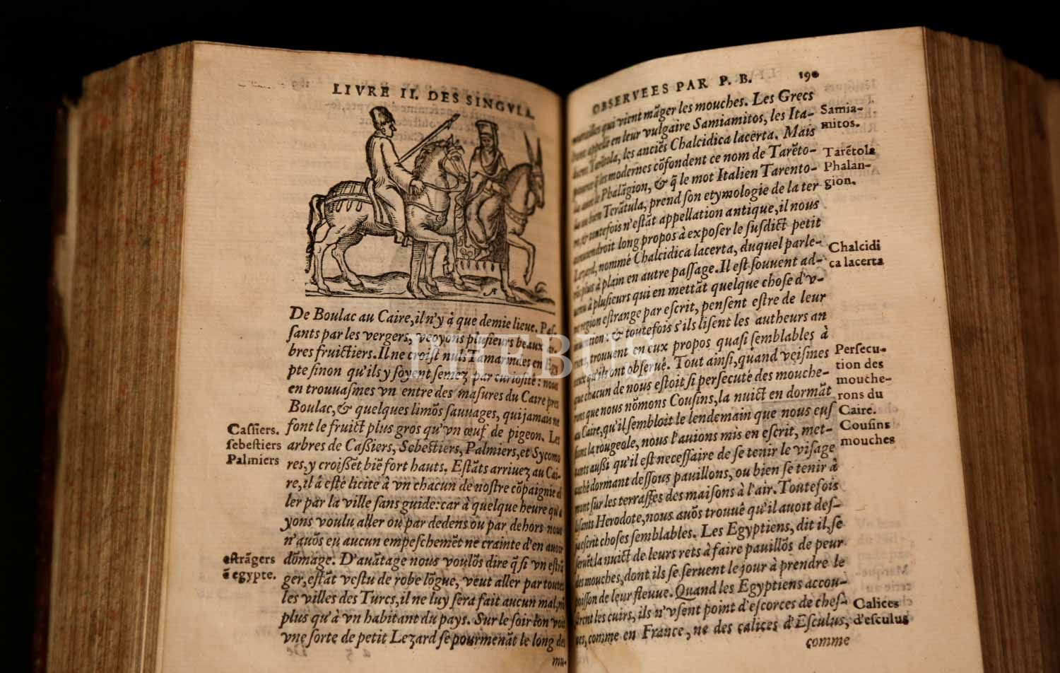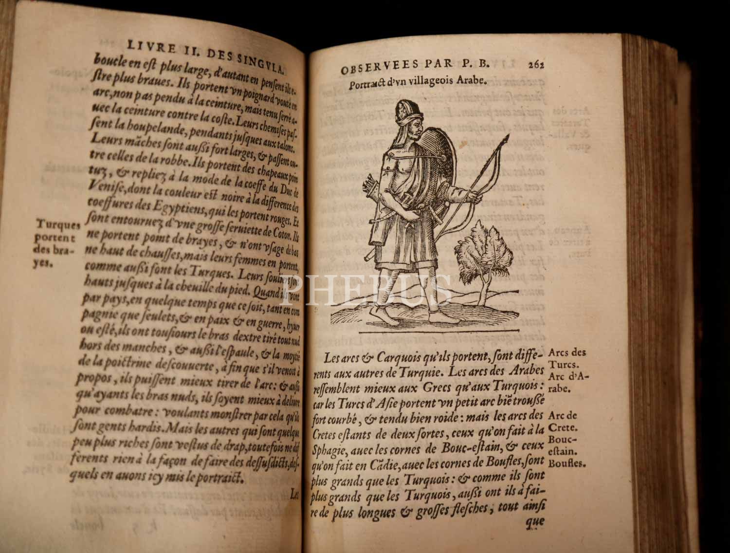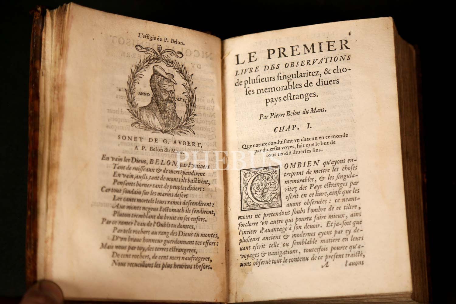 OBSERVATIONS DE PLUSIEURS SINGULARITEZ ET CHOSES MEMORABLES, TROUVEES EN GREECE, ASIE, INDIE, EGYPTE, ARABIE, & AUTRES PAYS ESTRANGES (Yunanistan, Asya, Hindistan, Mısır, Arabistan ve diğer yabancı ülkelerdeki birçok fevkalade ve unutulmaz şeylere dair gözlemler), Pierre Belon, 1555 Anvers, 375 sayfa, 11x15 cm...