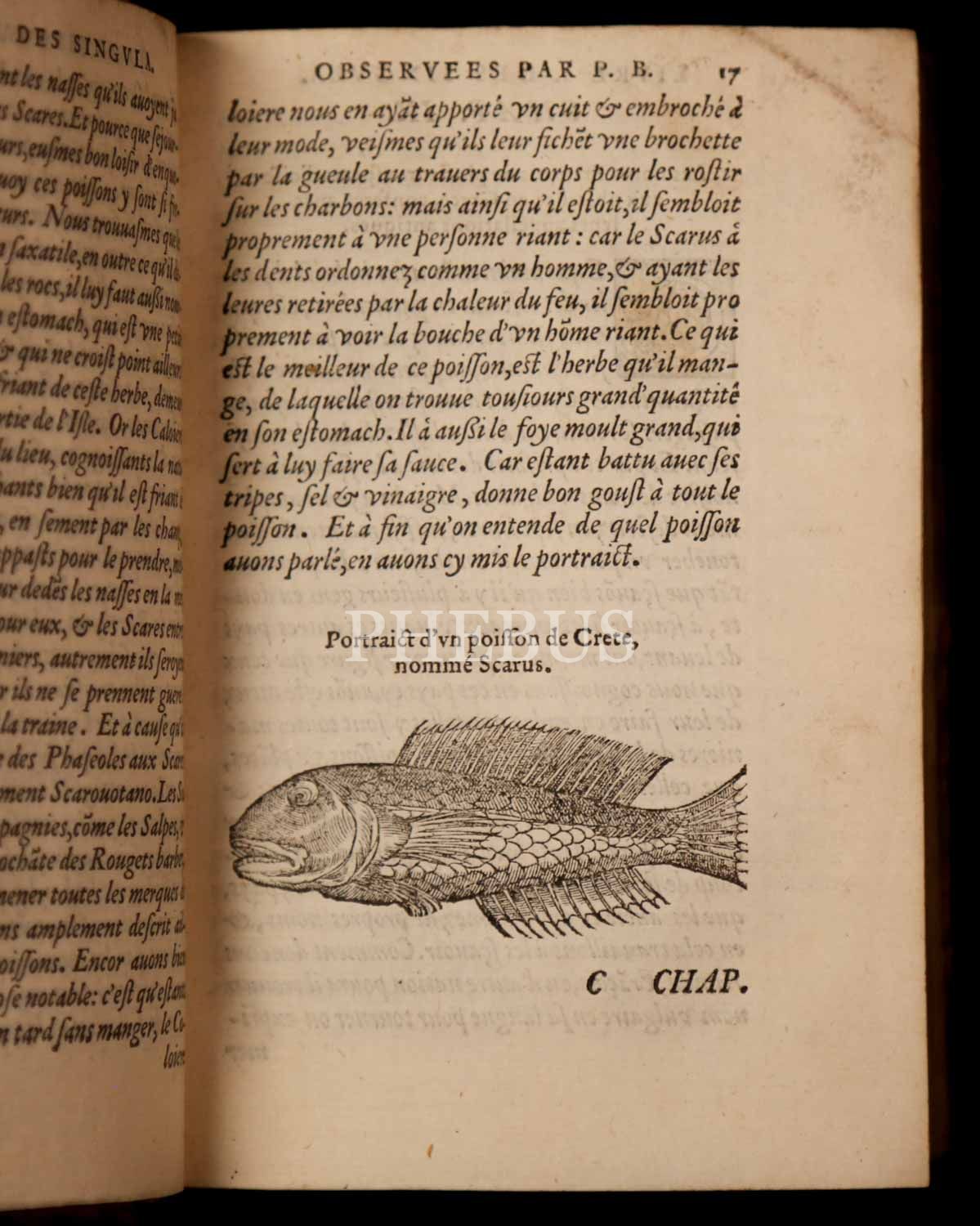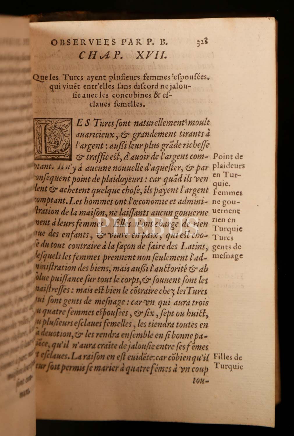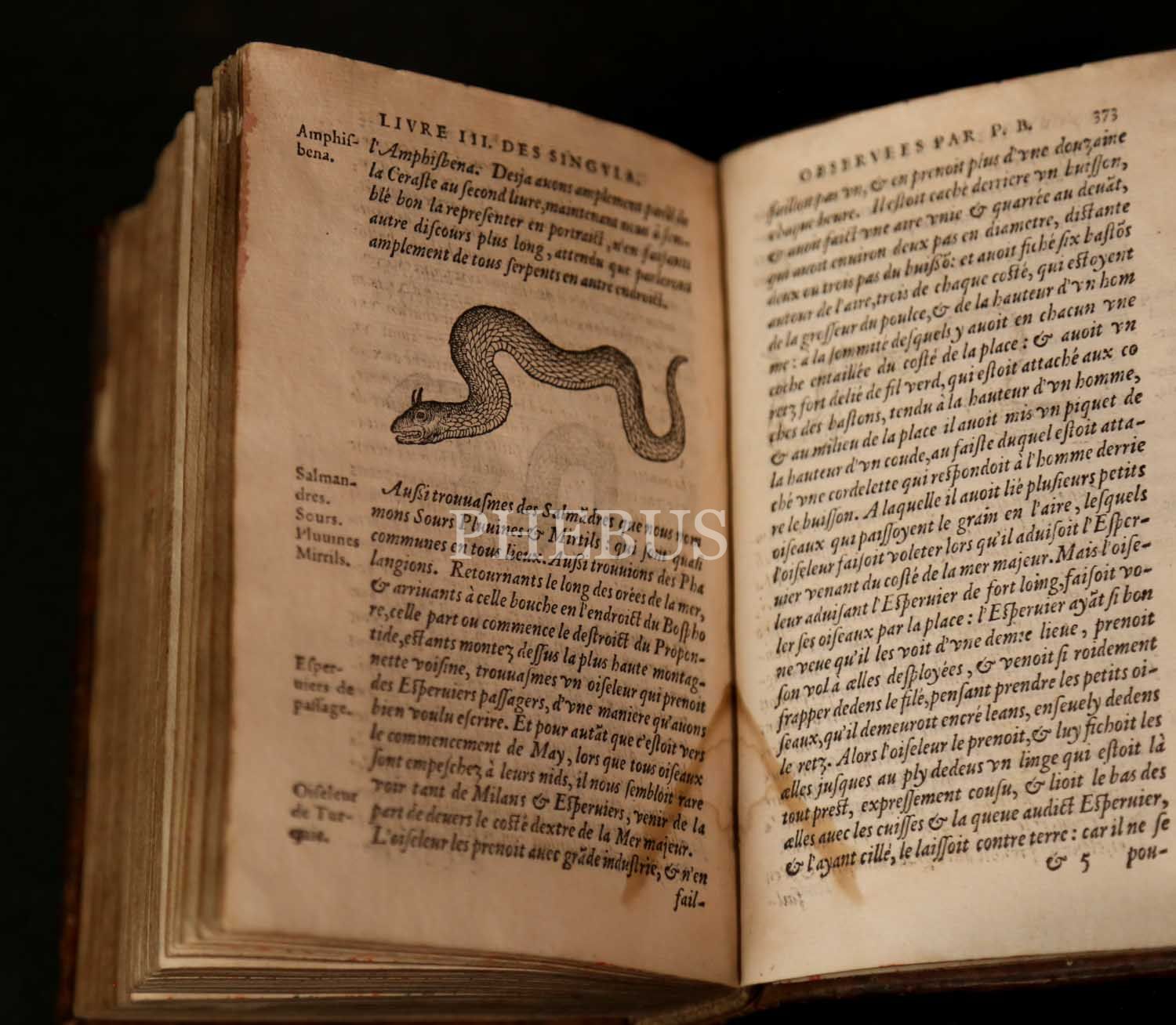 OBSERVATIONS DE PLUSIEURS SINGULARITEZ ET CHOSES MEMORABLES, TROUVEES EN GREECE, ASIE, INDIE, EGYPTE, ARABIE, & AUTRES PAYS ESTRANGES (Yunanistan, Asya, Hindistan, Mısır, Arabistan ve diğer yabancı ülkelerdeki birçok fevkalade ve unutulmaz şeylere dair gözlemler), Pierre Belon, 1555 Anvers, 375 sayfa, 11x15 cm...