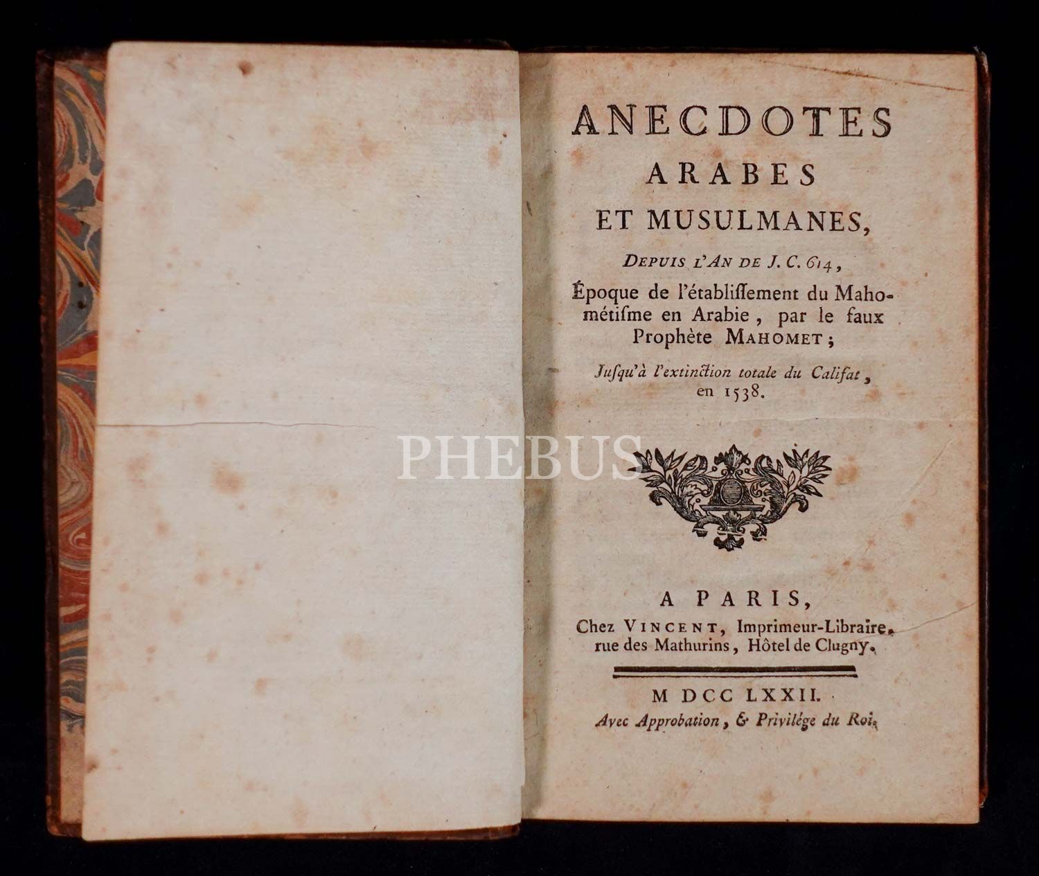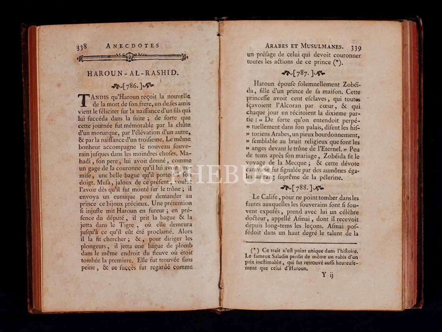 ANECDOTES ARABES ET MUSULMANES (Araplara ve Müslümanlara ilişkin anekdotlar) Antoine Hornot, 1772 Paris, 733 sayfa, 11x17 cm...